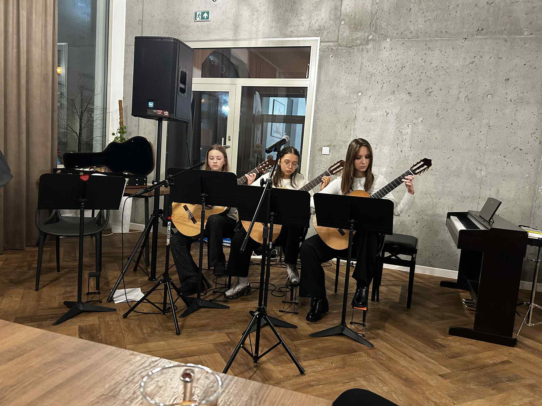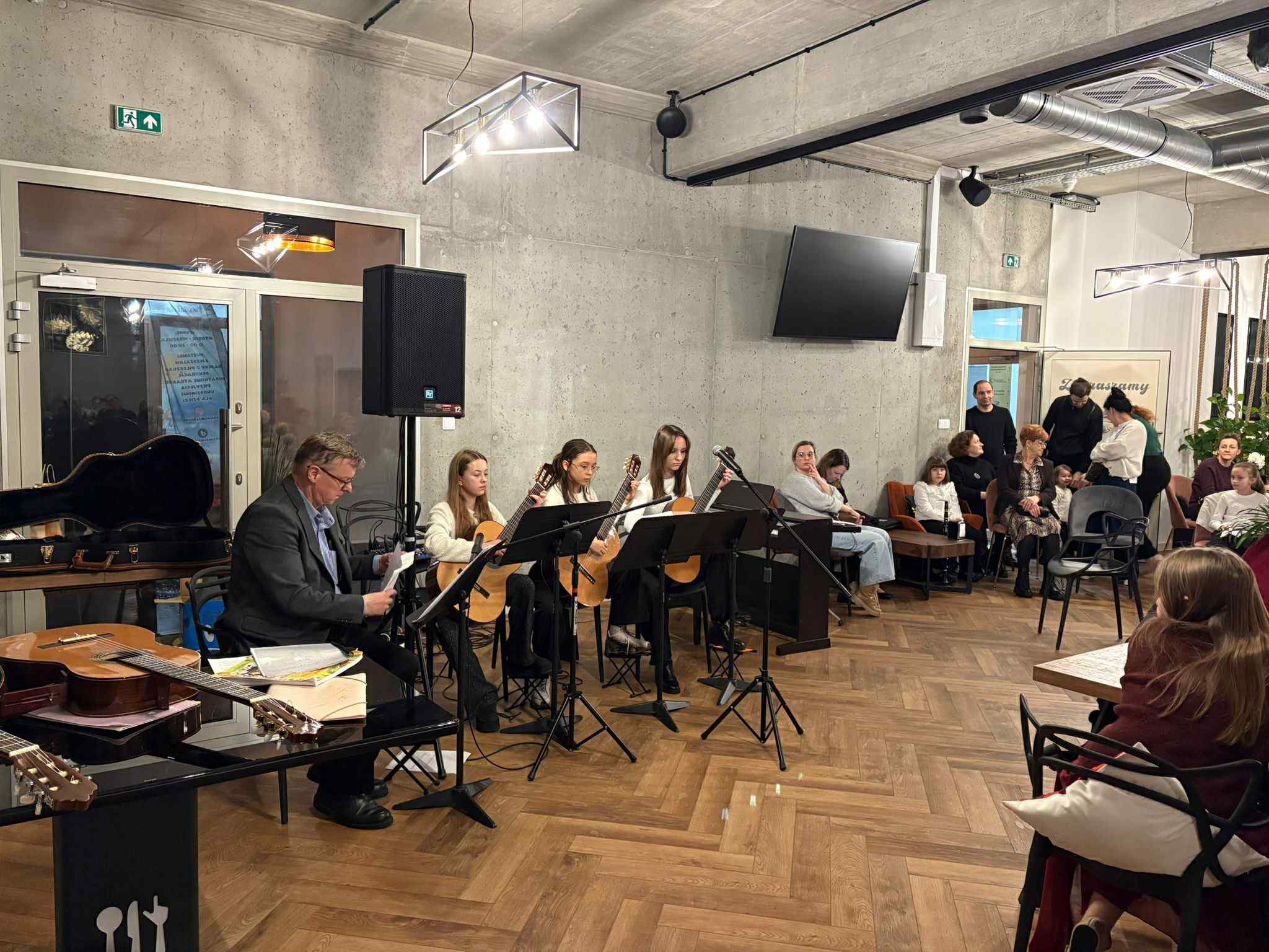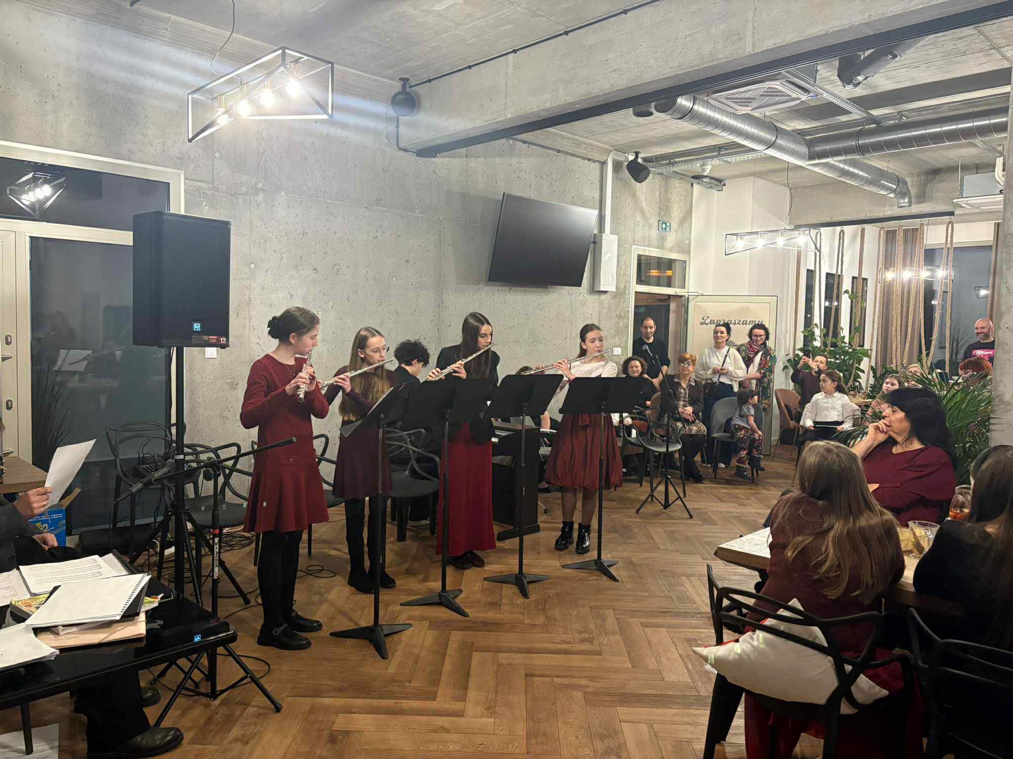 Podczas koncertu zaprezentowali się uczniowie szkoły muzycznej, wykonując utwory na gitarach, fortepianie, flecie, klarnecie, skrzypcach, akordeonie oraz ksylofonie. Różnorodność instrumentów i repertuaru stworzyła ciepłą, uroczystą atmosferę, a młodzi wykonawcy zostali nagrodzeni gromkimi brawami.