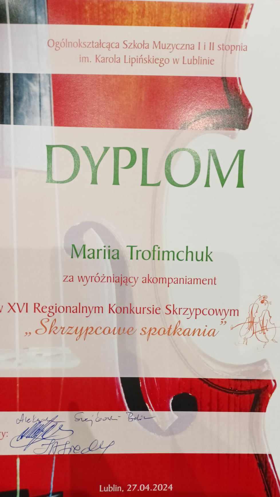 Natomiast Pani Maria Trofymchuk została wyróżniona