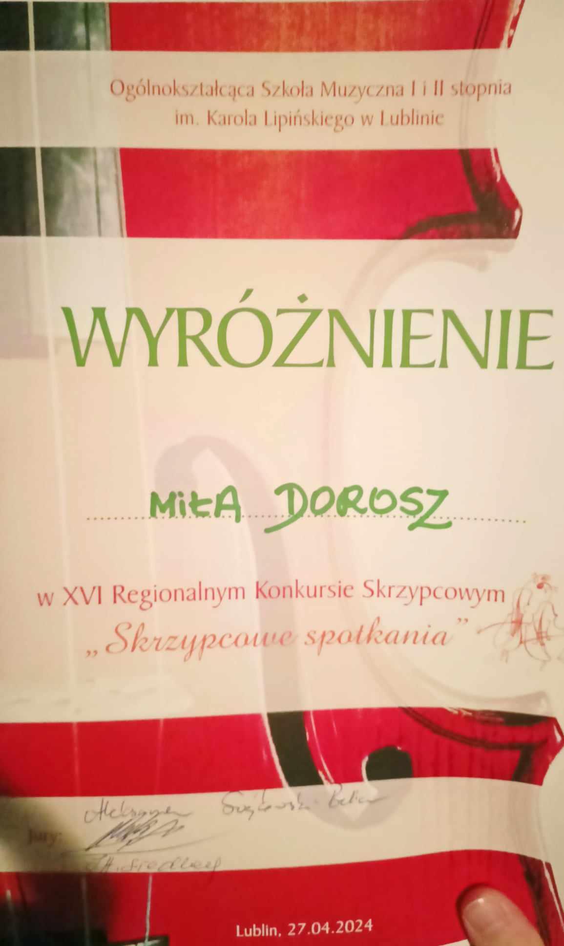 🎻Kolejny sukces uczennicy Pani Małgorzaty Kalisz, tym razem na XVI Regionalnym Konkursie Skrzypcowym "Skrzypcowe Spotkania" w Lublinie :