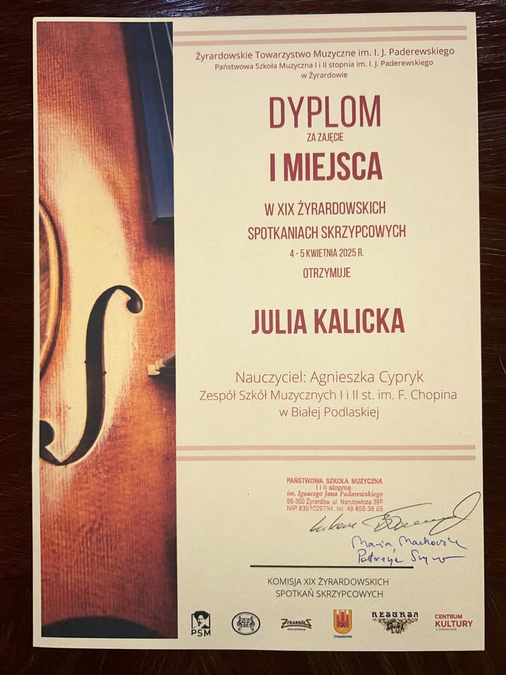 Szanowni Państwo, w dniach 4-6 kwietnia w Państwowej Szkole Muzycznej I i II st. im. I. J. Paderewskiego w Żyrardowie odbyły się XIX Żyrardowskie Spotkania Skrzypcowe.