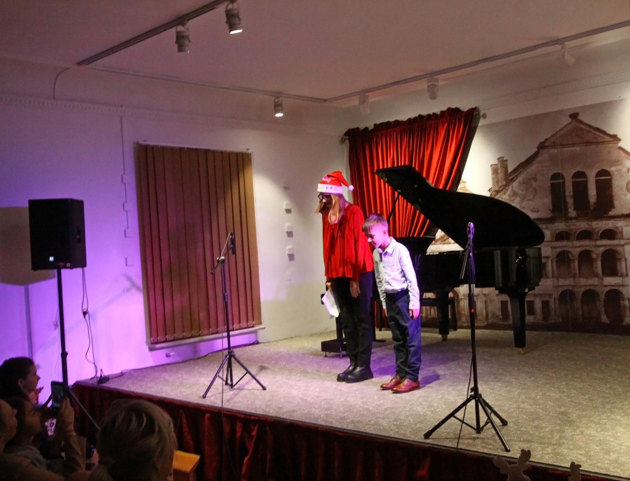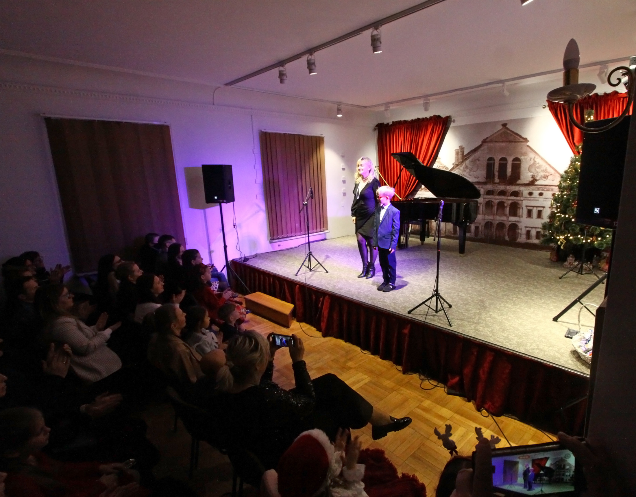 Pod koniec koncertu salę wypełniły złote konfetti, a uroczystym zwieńczeniem wydarzenia było wspólne wykonanie kolędy „Przybieżeli do Betlejem”. Po koncercie najmłodsi uczestnicy mogli poczęstować się cukierkami ukrytymi pod choinką.