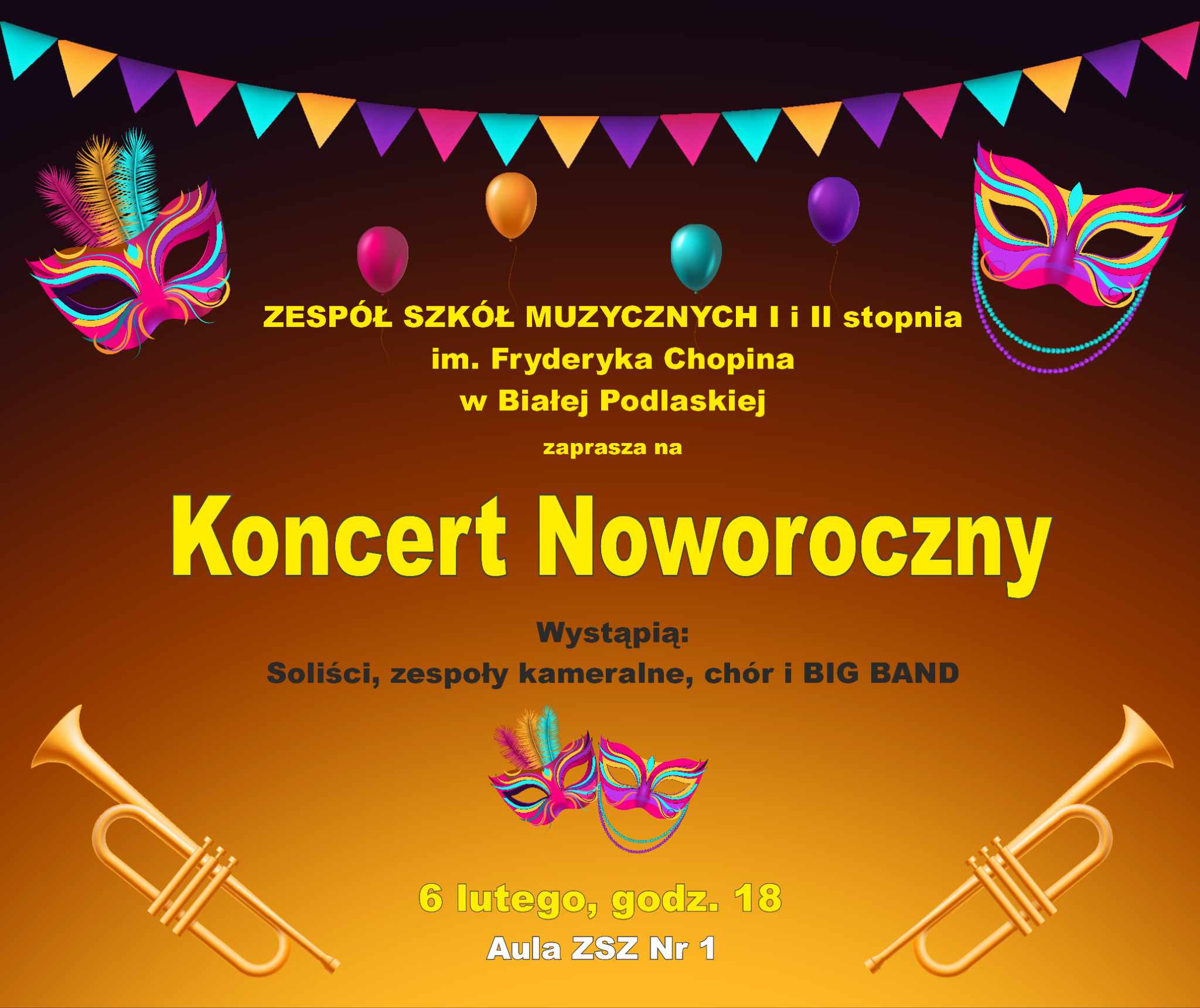 6.02.2025 odbył się Koncert Noworoczny w wykonaniu solistów, Big Biała Band pod kierunkiem Pana Waldemara Robaka oraz chóru szkolnego Zespół Szkół Muzycznych I i II stopnia im. F. Chopina w Białej Podlaskiej pod batutą Pana Piotra Gołowczyca.