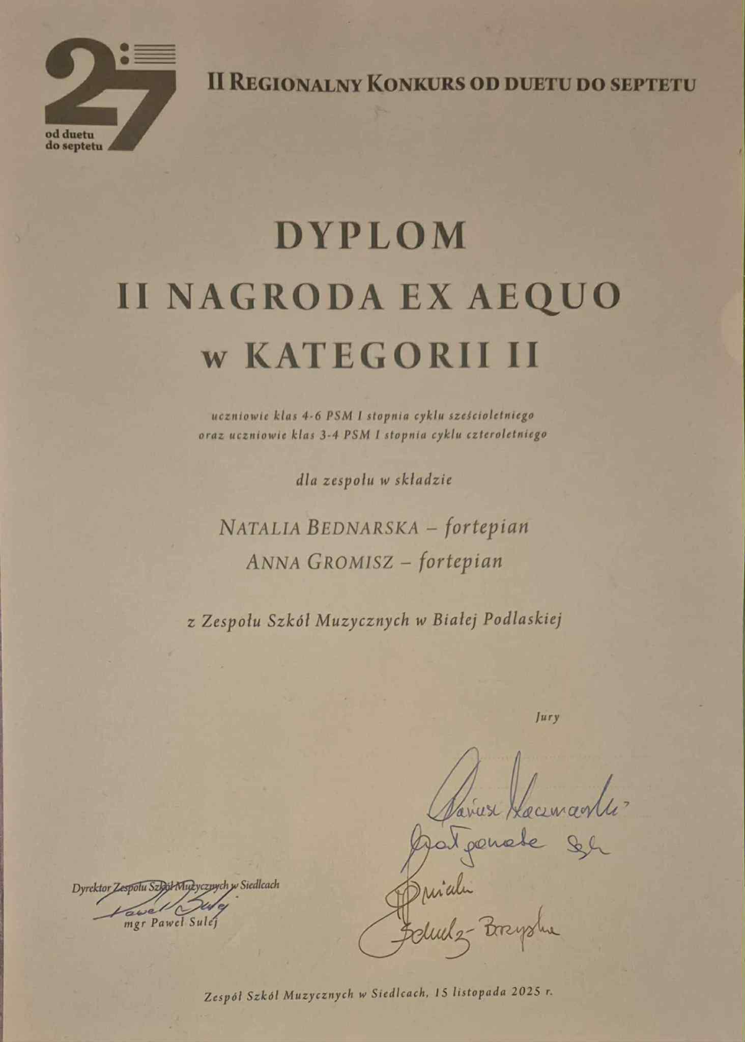 Muzyczne wieści z Siedlec! 15 listopada na II Regionalnym Konkursie „Od duetu do septetu” w Siedlcach nasze dwa fortepianowe duety pokazały, że cztery ręce potrafią zdziałać prawdziwą magię.