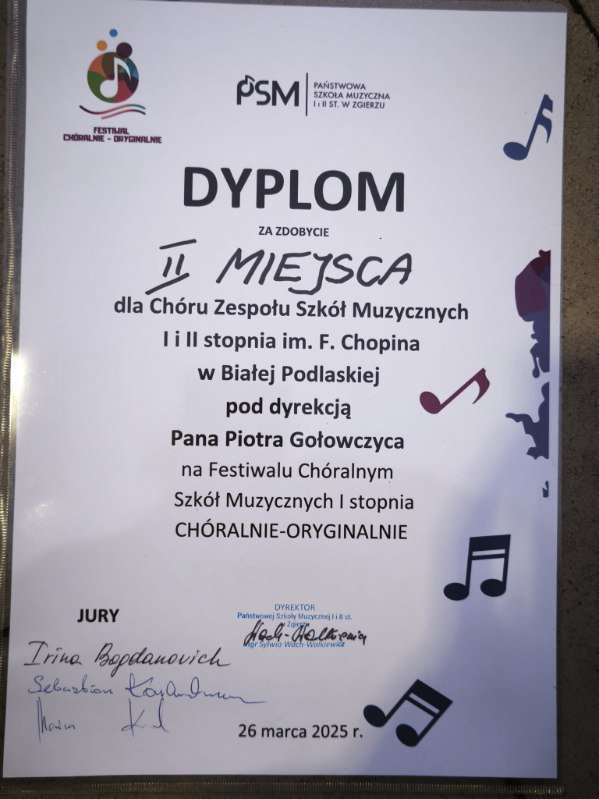Otóż ten znakomity zespół zdobył II miejsce na Festiwalu Chóralnym Szkół Muzycznych I stopnia który odbył się 26 marca w Zgierzu.