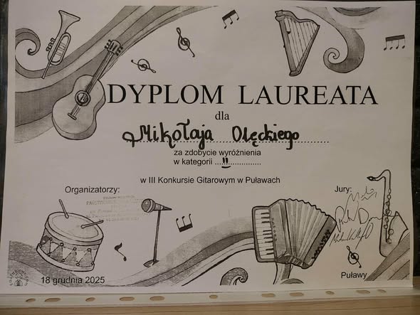 Dzień dobry Serdeczne gratulacje dla uczniów naszej szkoły, którzy wzięli udział w III Konkursie Gitarowym w Puławach:
