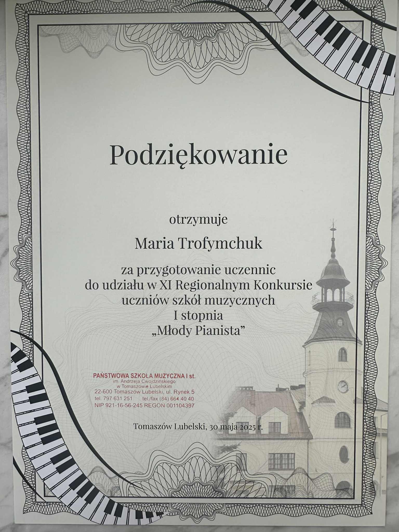 30 maja 2025 r. uczniowie naszej szkoły wspaniale zaprezentowali się podczas XI Regionalnego Konkursu „Młody Pianista” w Tomaszowie Lubelskim!