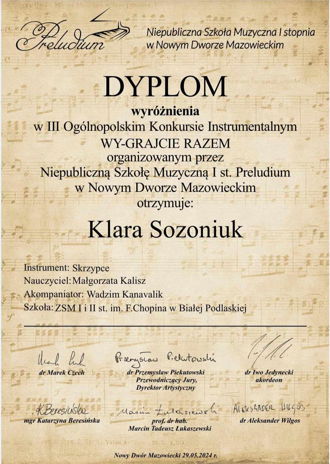 🎻Klara Sozoniuk - wyróżnienie - klasa pani profesor Małgorzaty Kalisz.
