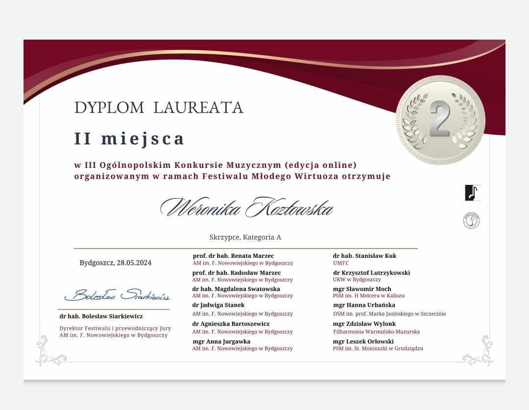 🎻Weronika Kozłowska - wyróżnienie - klasa pani profesor Krystyny Andrukhiv ,