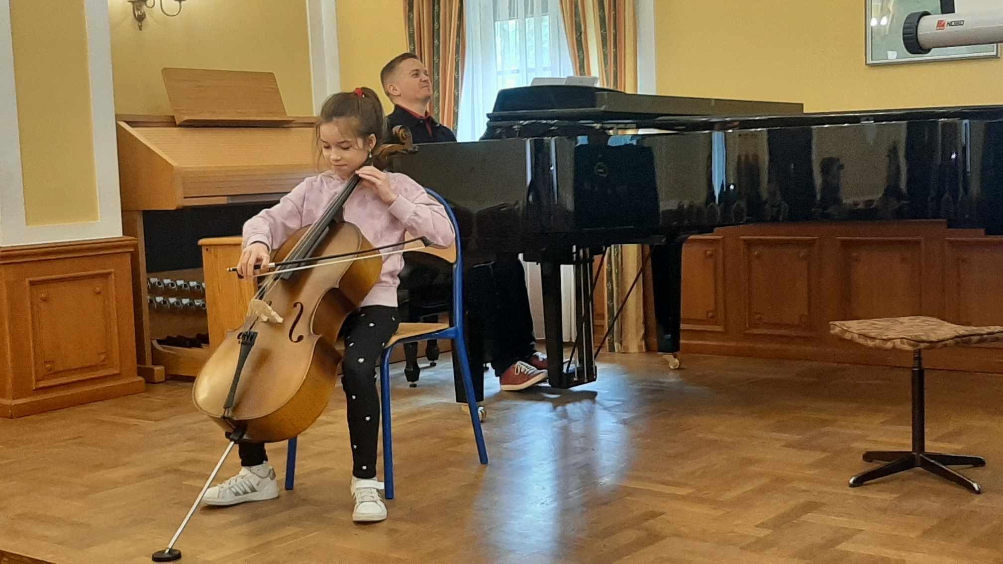 Gabrysia jest uczennicą w klasie wiolonczeli Pani Julii Bezushkevych. Konkurs odbył się 23 kwietnia 2024 w Łańcucie. Przy fortepianie Gabrieli towarzyszył Pan Jurij Trofymczuk, który otrzymał dyplom za wyróżniający akompaniament.