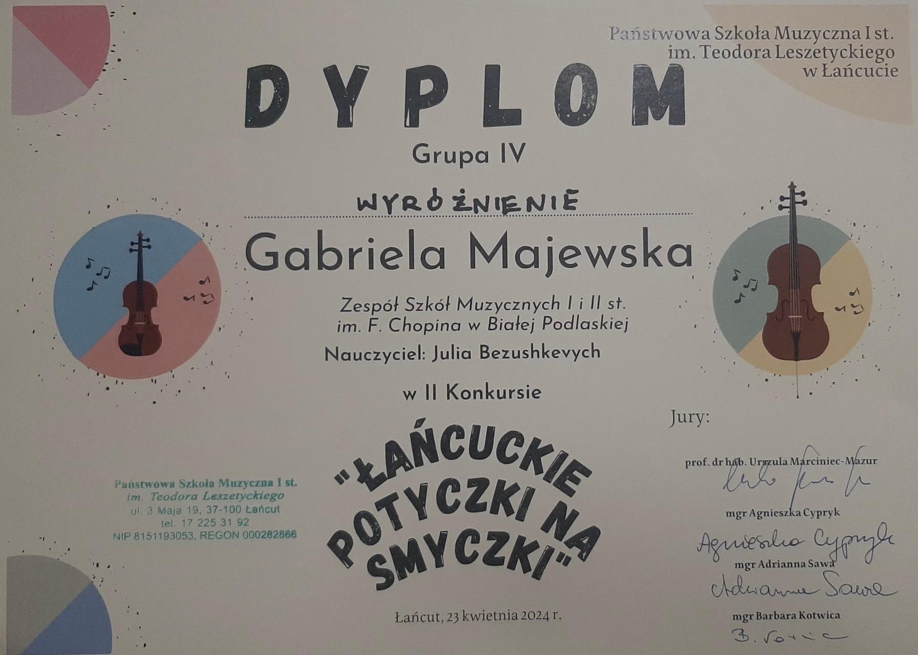 Z II regionalnego konkursu skrzypcowego i wiolonczelowego ,,Łańcuckie potyczki na smyczki'' Gabriela Majewska przywiozła wyróżnienie.