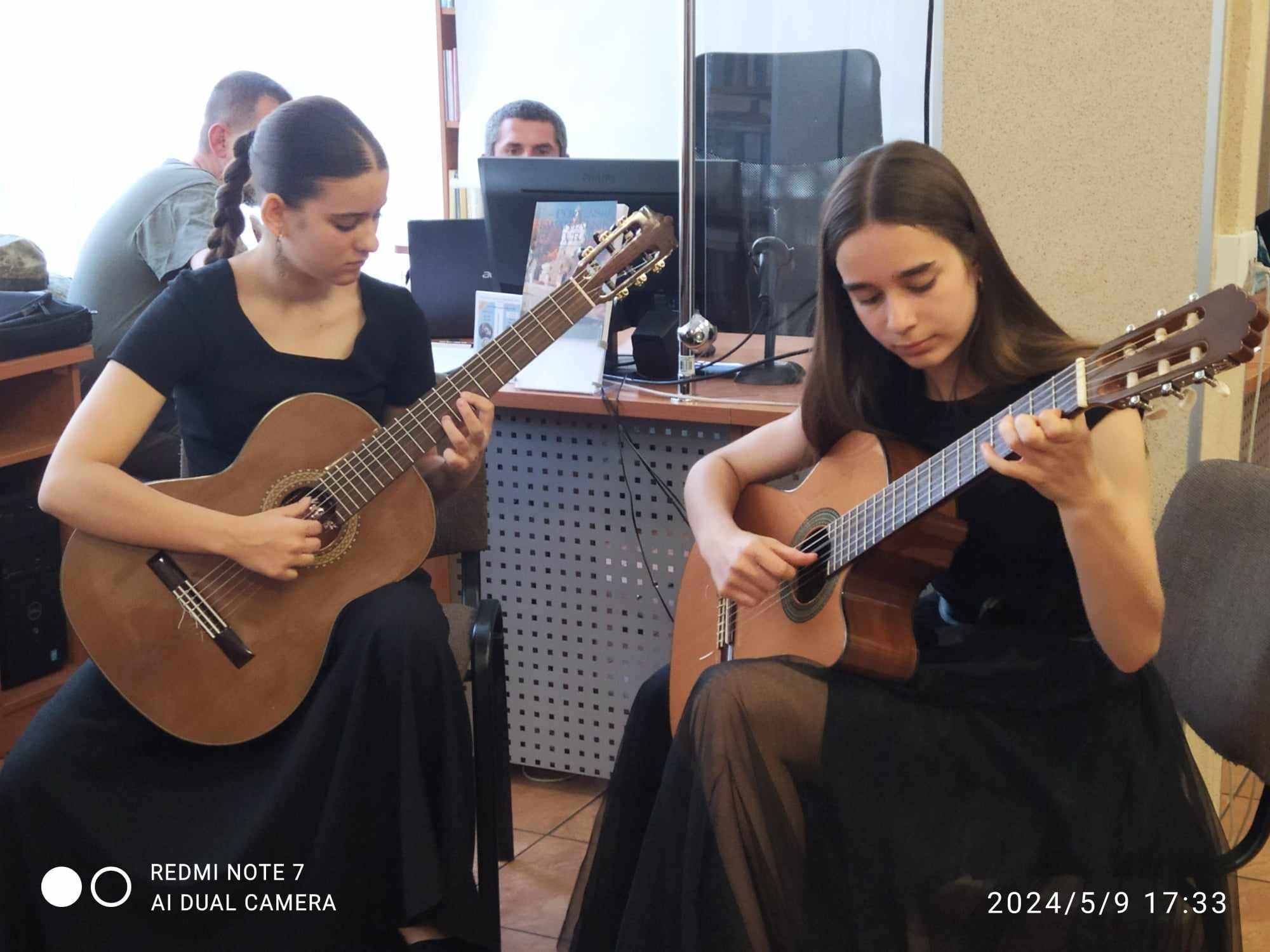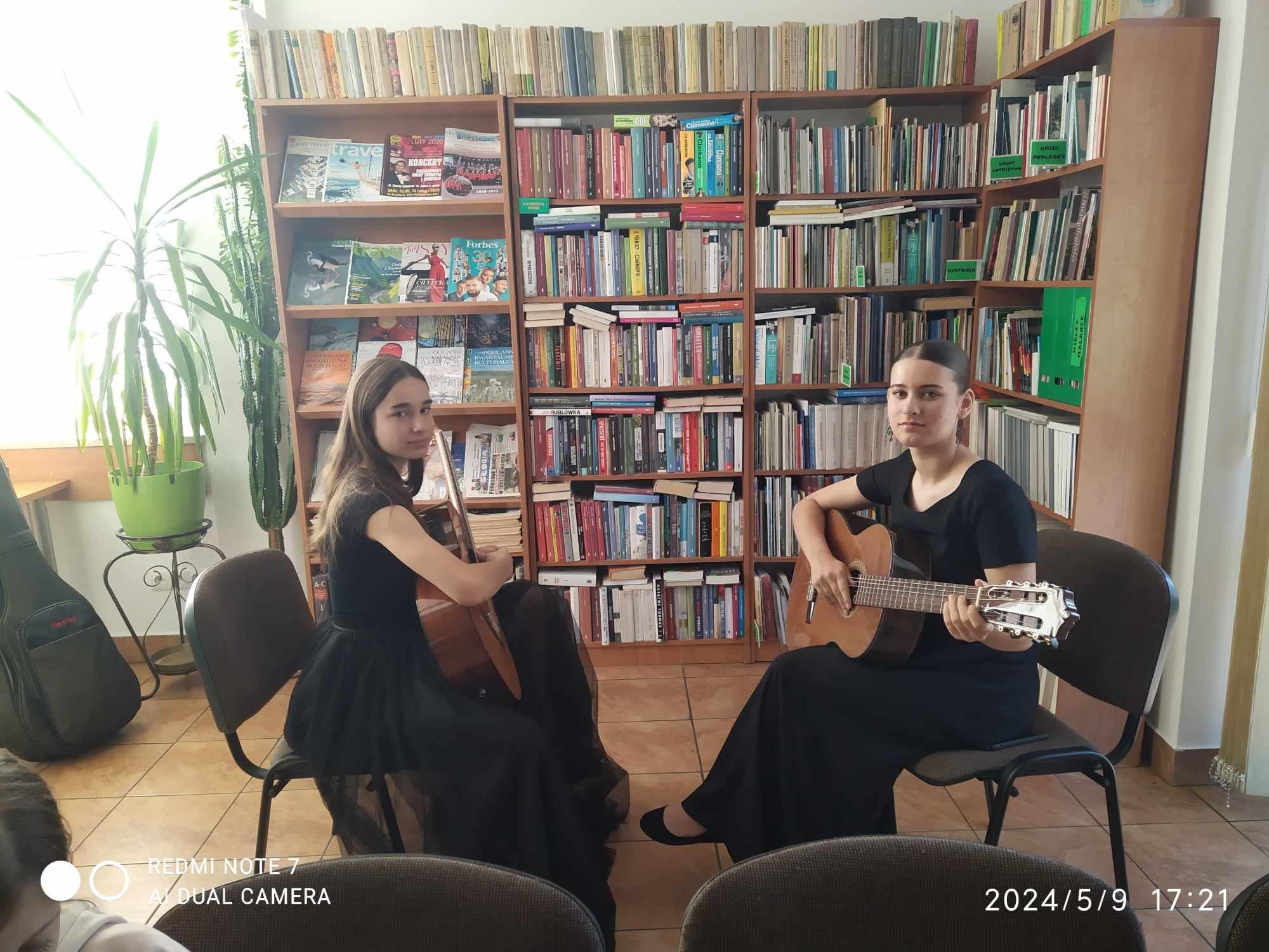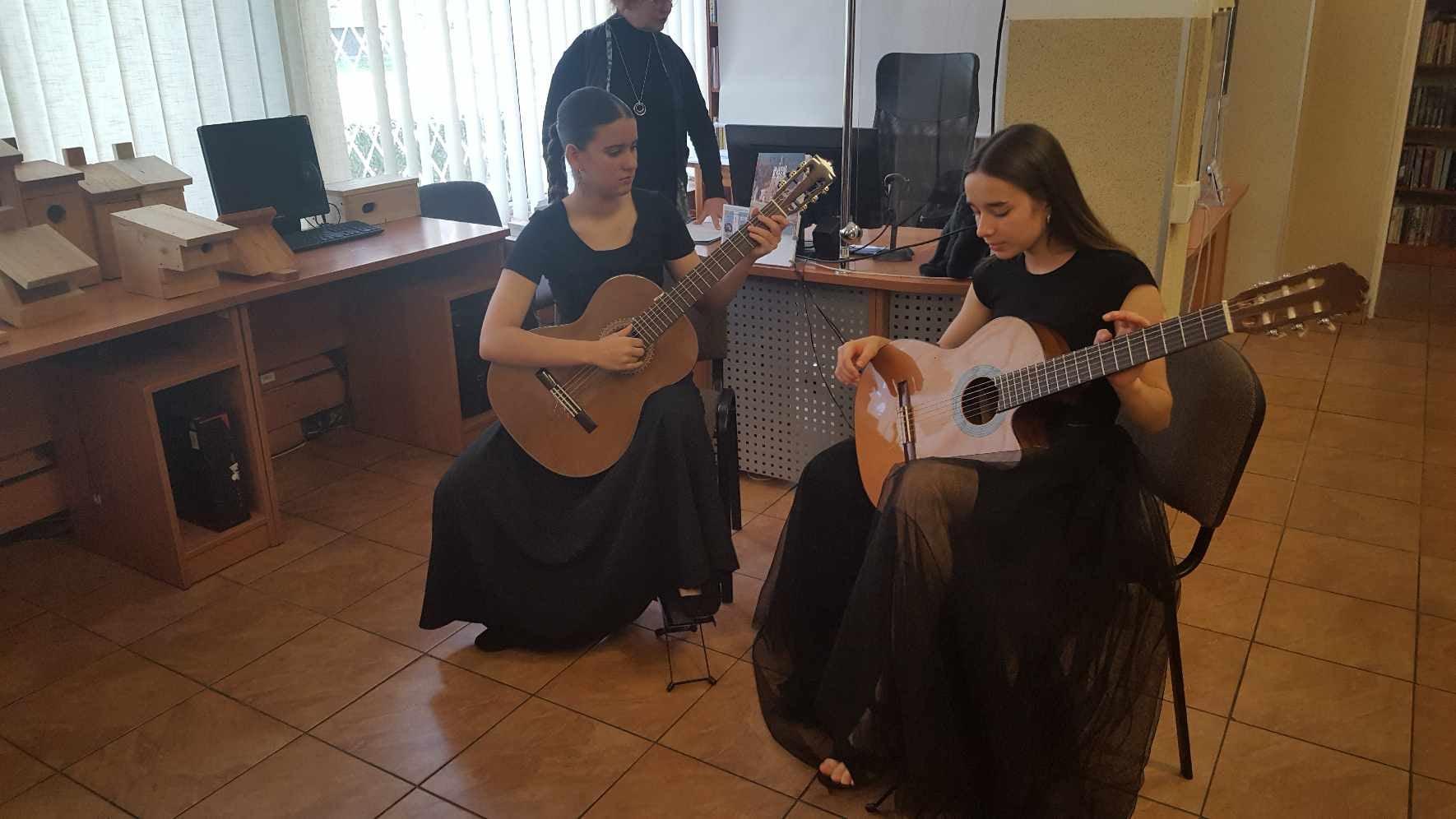 Występ naszych gitarzystek w Miejskiej Bibliotece Publicznej