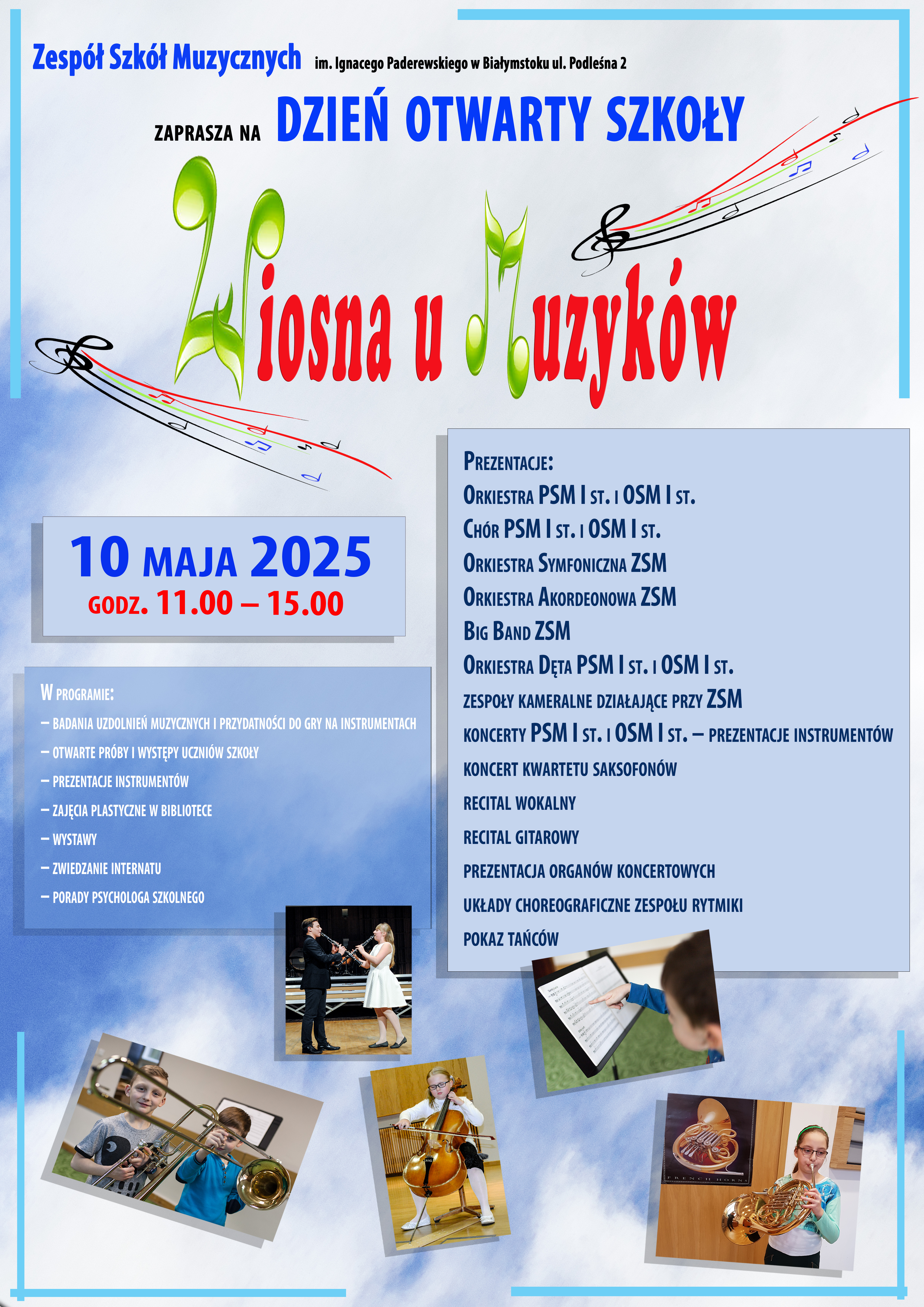 Program Dnia Otwartego Zespołu Szkół Muzycznych im. Ignacego Paderewskiego w Białymstoku: