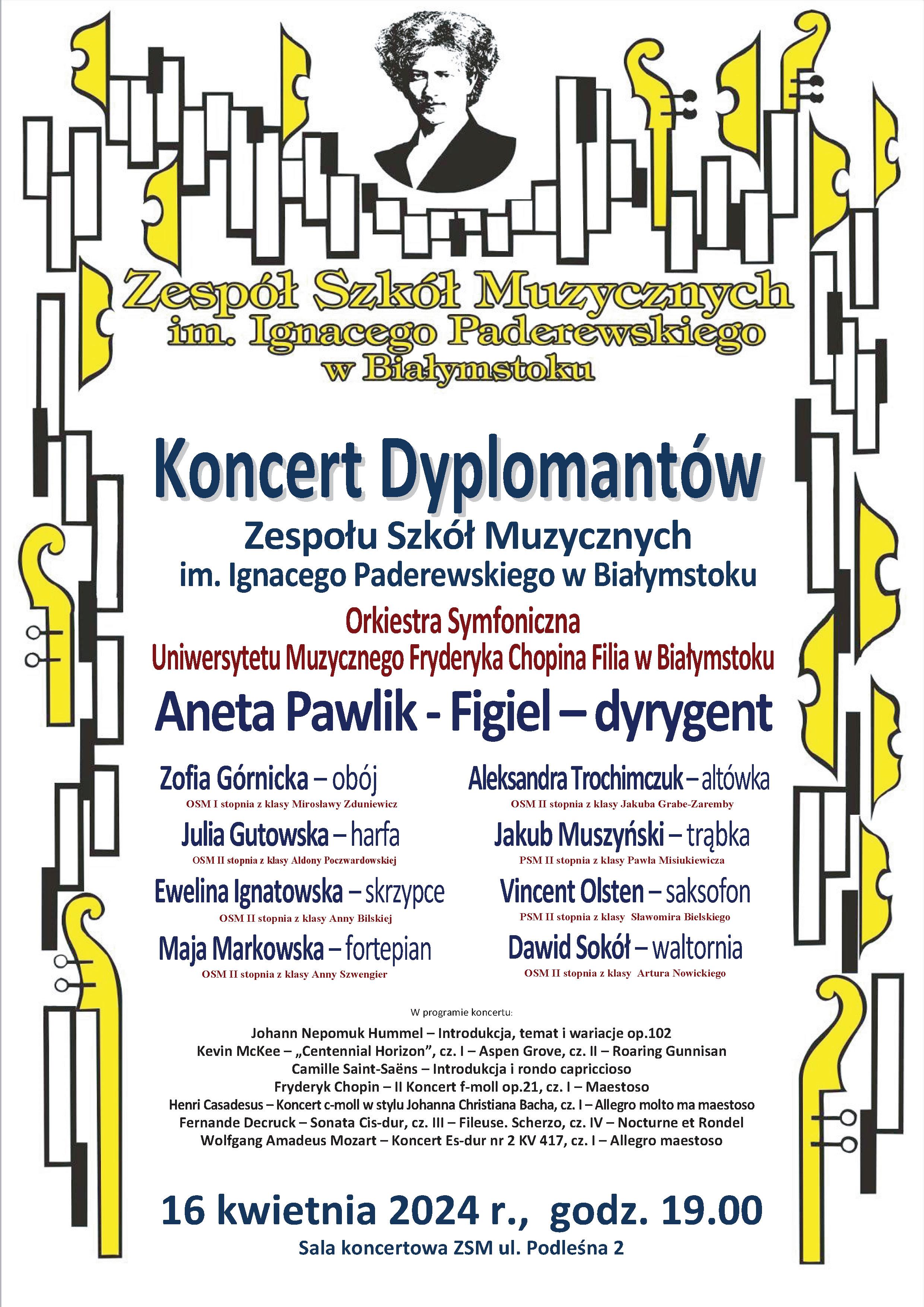 Koncert Dyplomantów Zespołu Szkół Muzycznych im. I. Paderewskiego w Białymstoku
