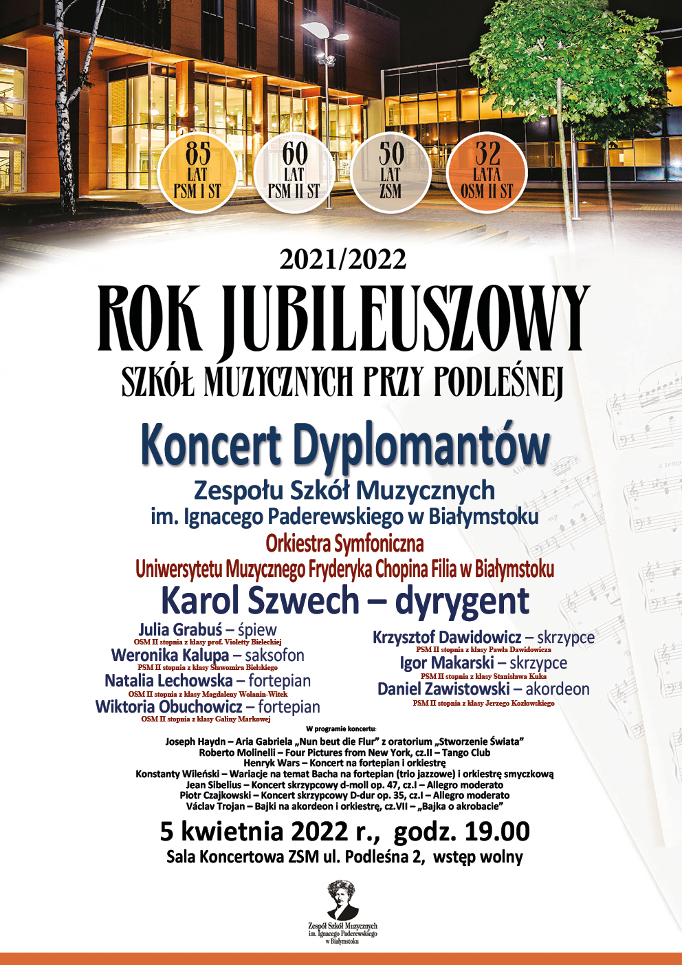 Koncert dyplomantów Koncert dyplomantów 2022-04-05 19:00 , KIEDY 05 kwietnia 2022 (wtorek) godz 19:00 DODAJ DO KALENDARZA Zdjęcia (1) Pokaż zdjęcie 1 z galerii.