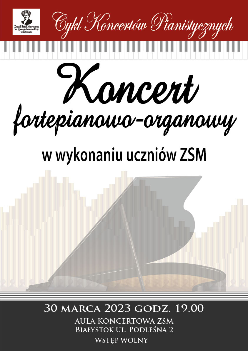 Zespół Szkół Muzycznych im. Ignacego Paderewskiego w Białymstoku, Białystok ul. Podleśna 2 Aula Koncertowa, wstęp wolny