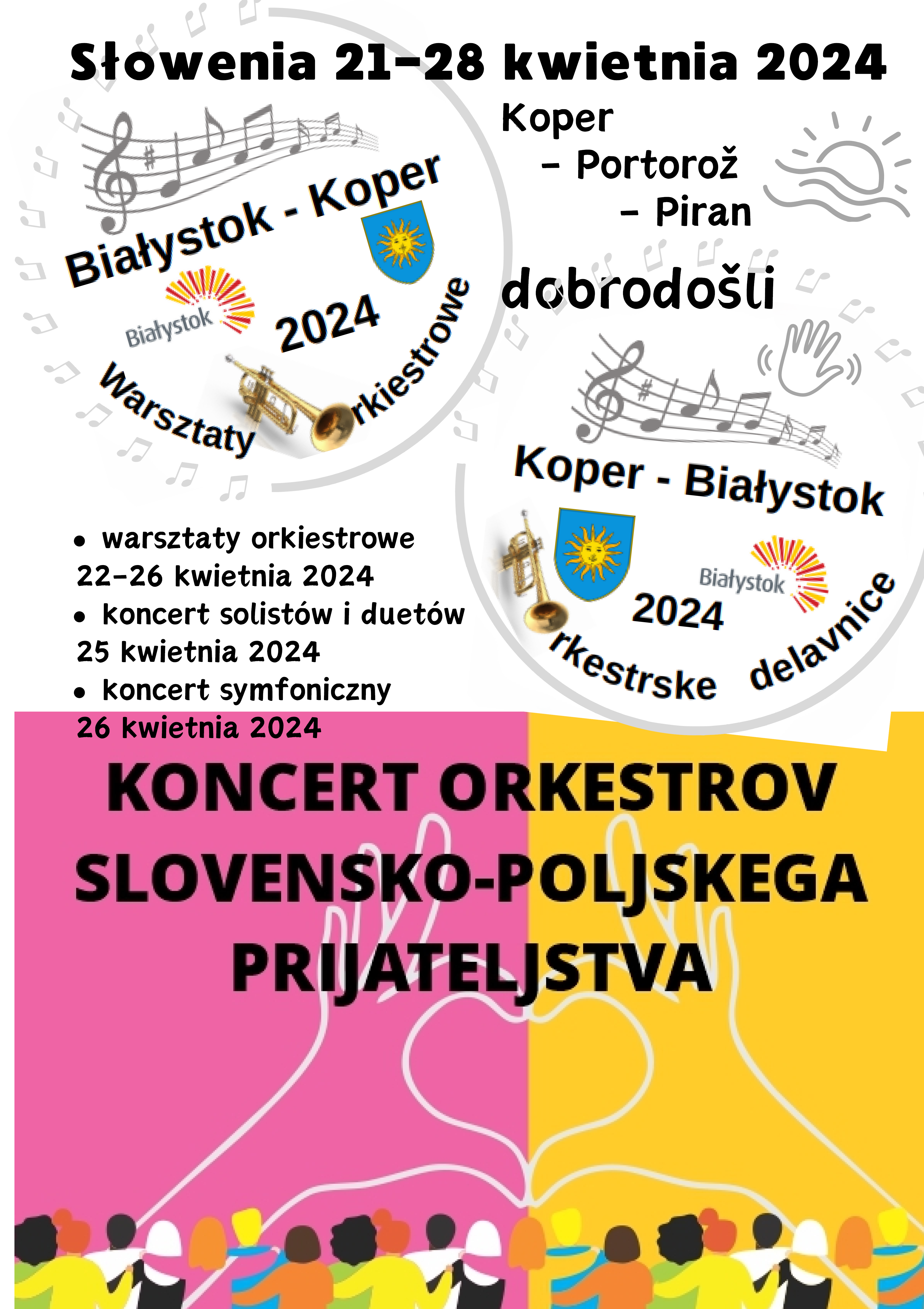 W dniach 21-28 kwietnia 2024 r. będzie miał miejsce kolejny już wyjazd młodzieży Zespołu Szkół Muzycznych im. Ignacego Paderewskiego w Białymstoku do Słowenii w ramach współpracy ze szkołą muzyczną w Koper (Glasbena šola Koper), tym razem na warsztaty orkiestrowe oraz koncerty w Koper, Portorož oraz Piran.