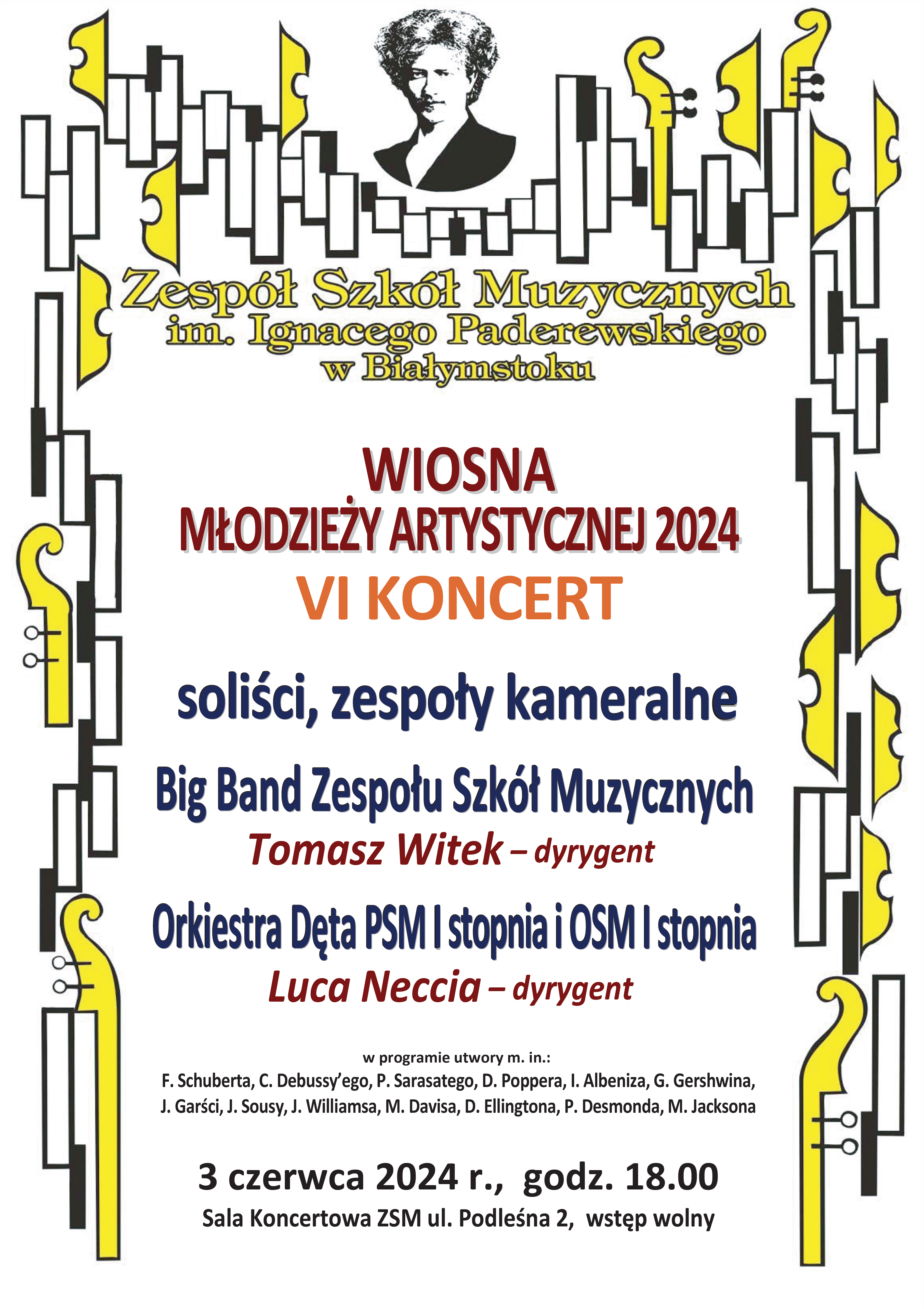 3 czerwca 2024 r., godz. 18.00 Sala Koncertowa ZSM ul. Podleśna 2, wstęp wolny