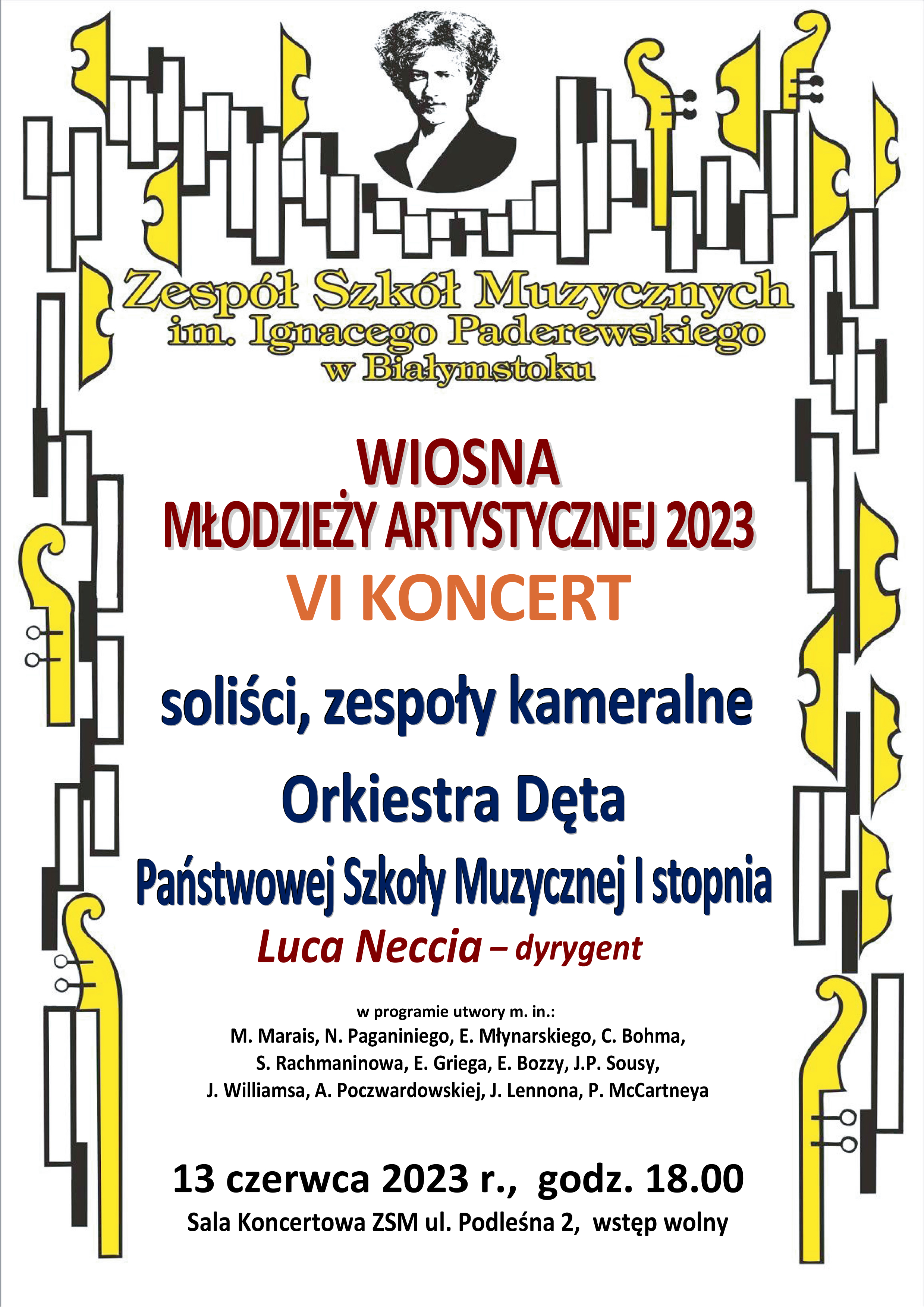 Z przyjemnością zapraszamy na szósty koncert z cyklu Wiosny Młodzieży Artystycznej, który odbędzie się we wtorek 13 czerwca 2023 r. o godzinie 18:00 w Sali Koncertowej naszej szkoły.