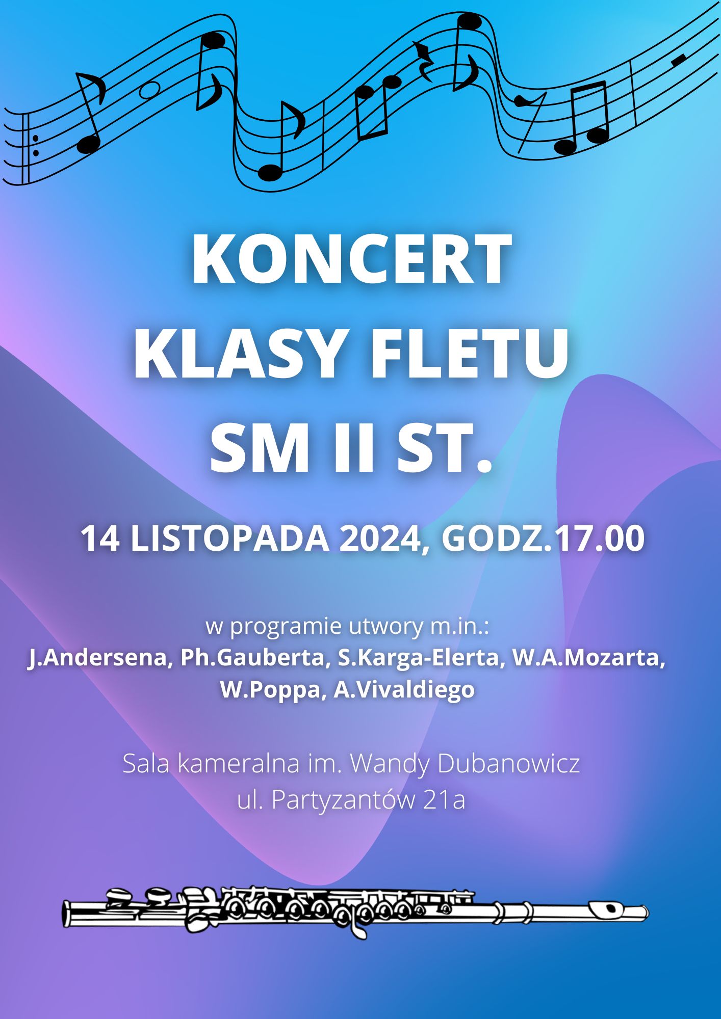 Serdecznie zapraszamy na koncert klasy fletu Szkoły Muzycznej II stopnia,