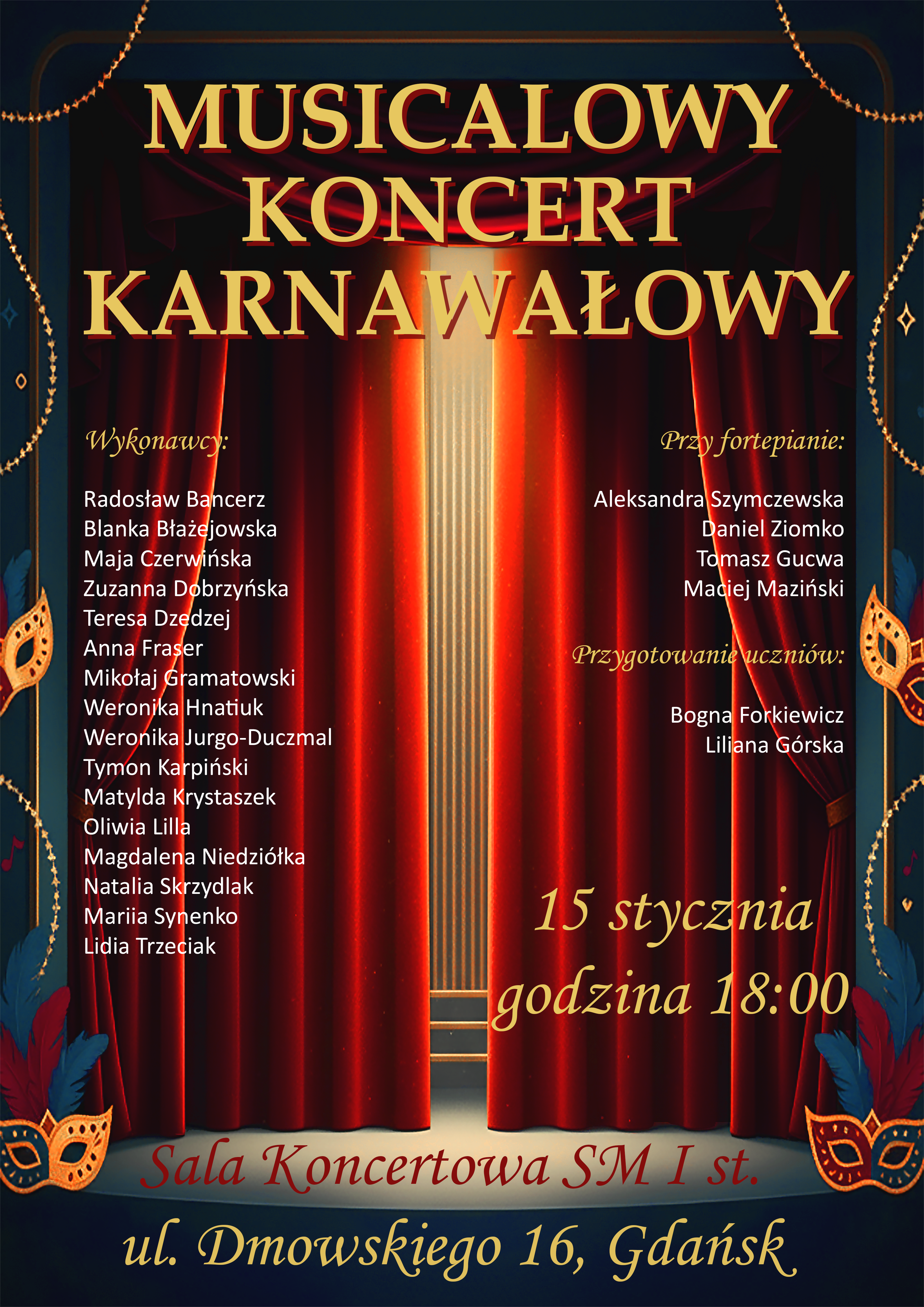 Zapraszamy na MUSICALOWY KONCERT KARNAWAŁOWY,