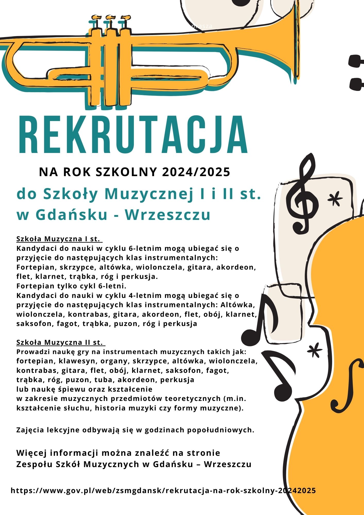 Rekrutacja do ZSM 19.02.2024 Serdecznie zapraszamy do zapoznania się z ofertą szkoły w zakresie kształcenia muzycznego. Materiały Rekrutacja na rok szkolny 2024/2025 Zdjęcia (1) Pokaż zdjęcie 1 z galerii.