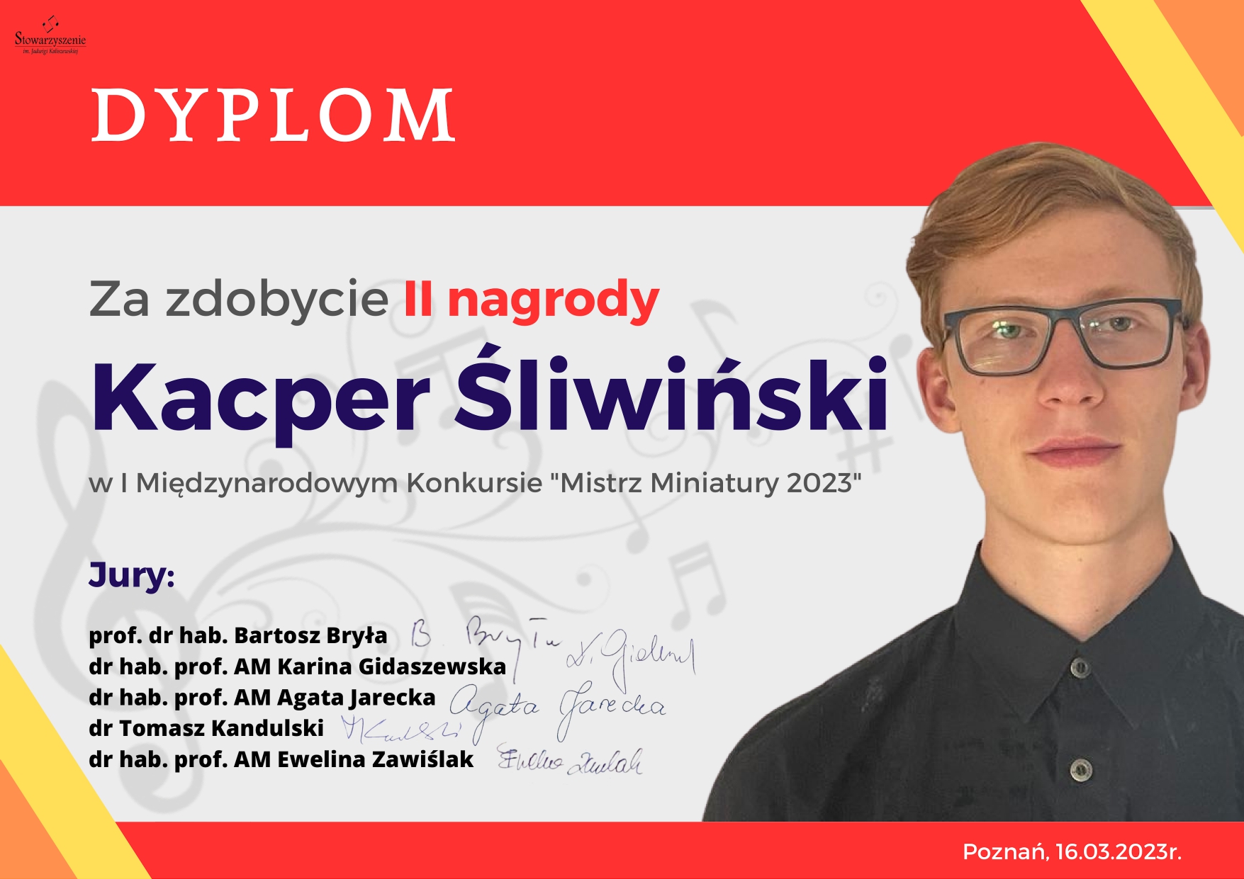 II nagroda Kacper Śliwiński, nauczyciel Tadeusz Samerek, akomp. Magdalena Darska-Szpakiewicz