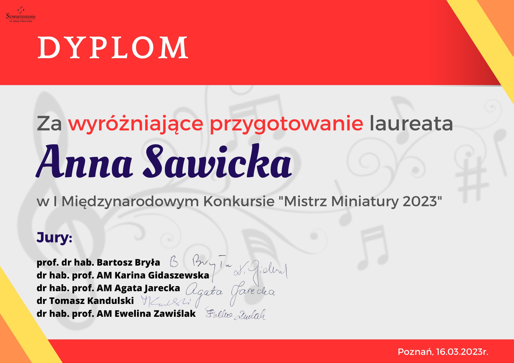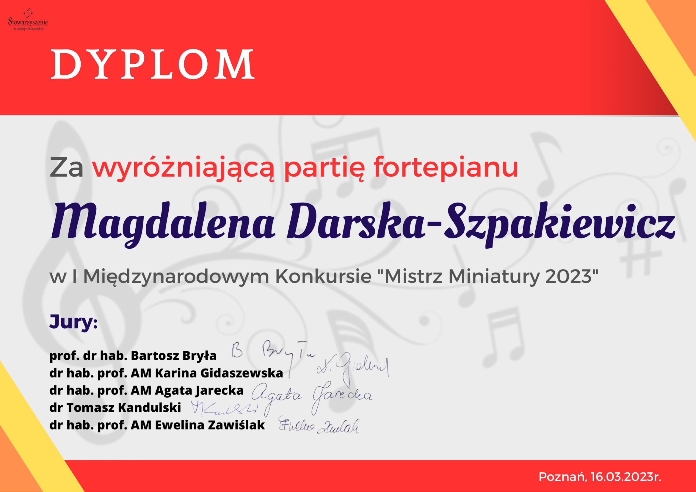 Dyplom za wyróżniającą partię fortepianu Magdalena Darska-Szpakiewicz
