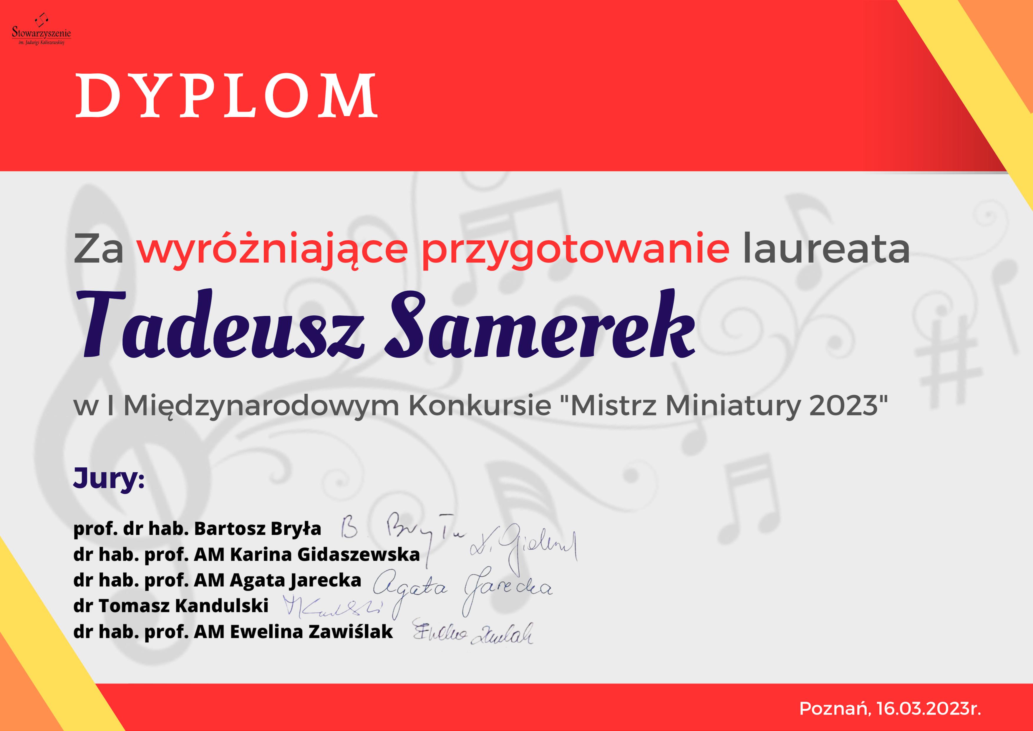 Dyplom za wyróżniające przygotowanie laureata - Tadeusz Samerek