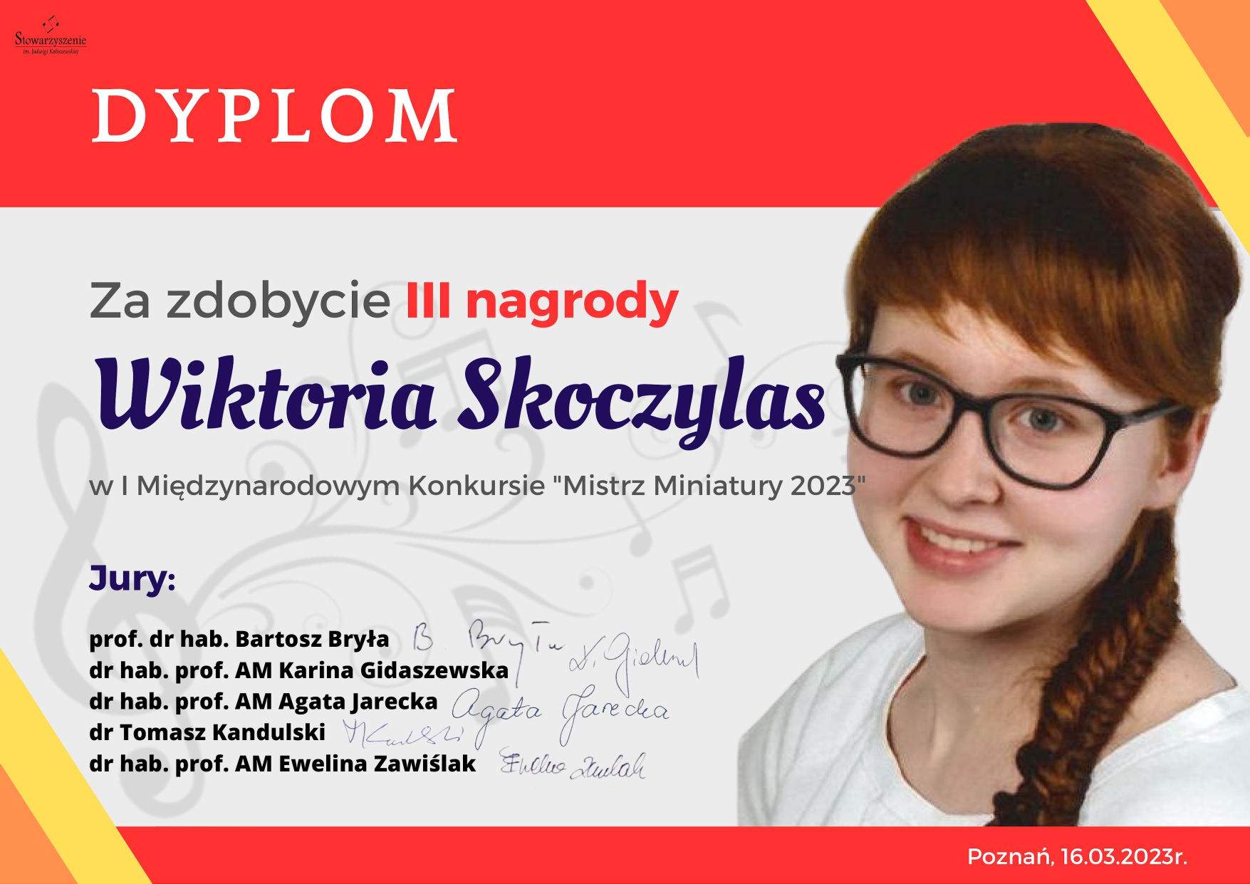 III nagroda Wiktoria Skoczylas, nauczyciel Anna Sawicka, akomp. Magdalena Darska-Szpakiewicz