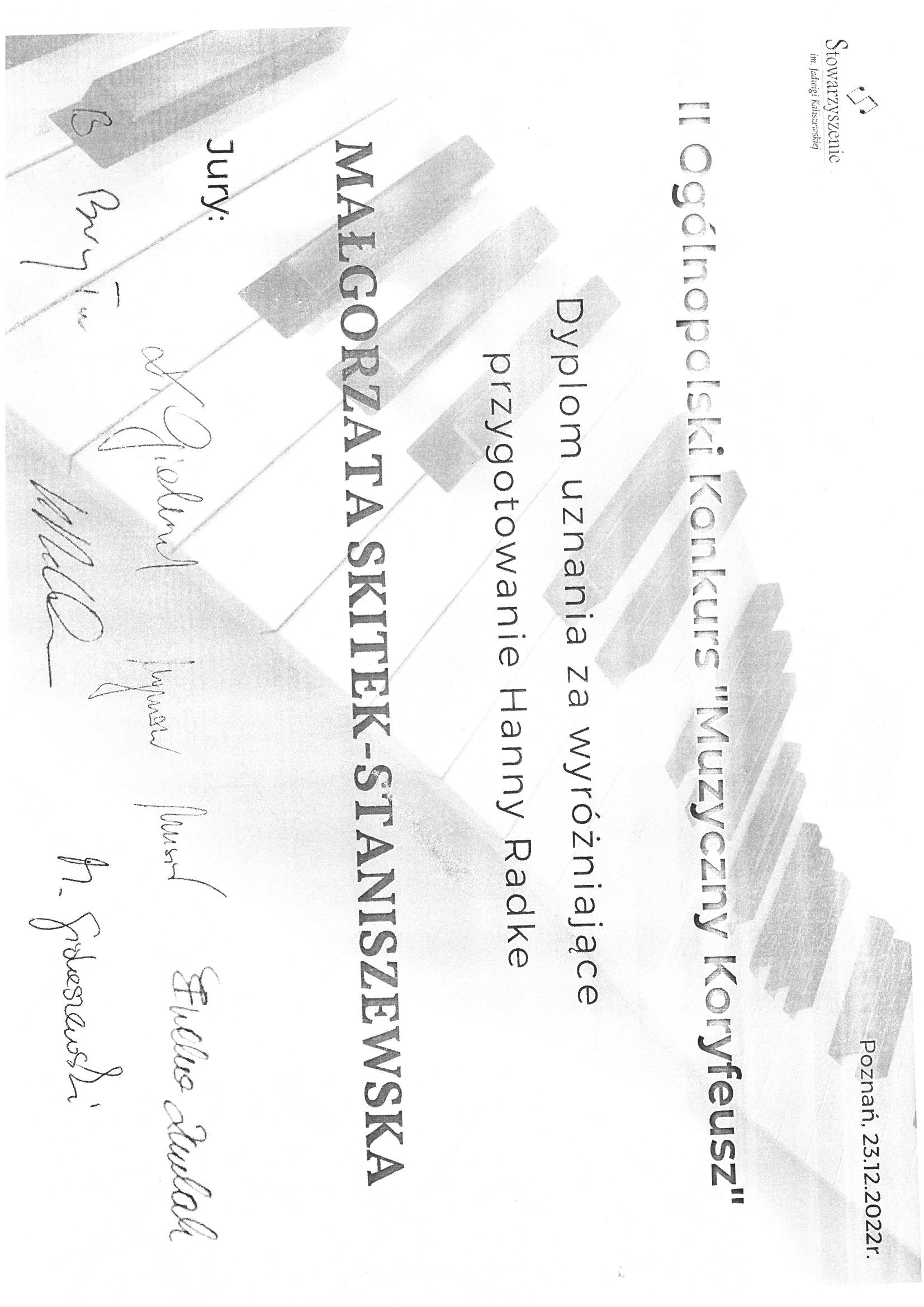 Naucz. Małgorzata Skitek-Staniszewska - Dyplom uznania za wyróżniające przygotowanie