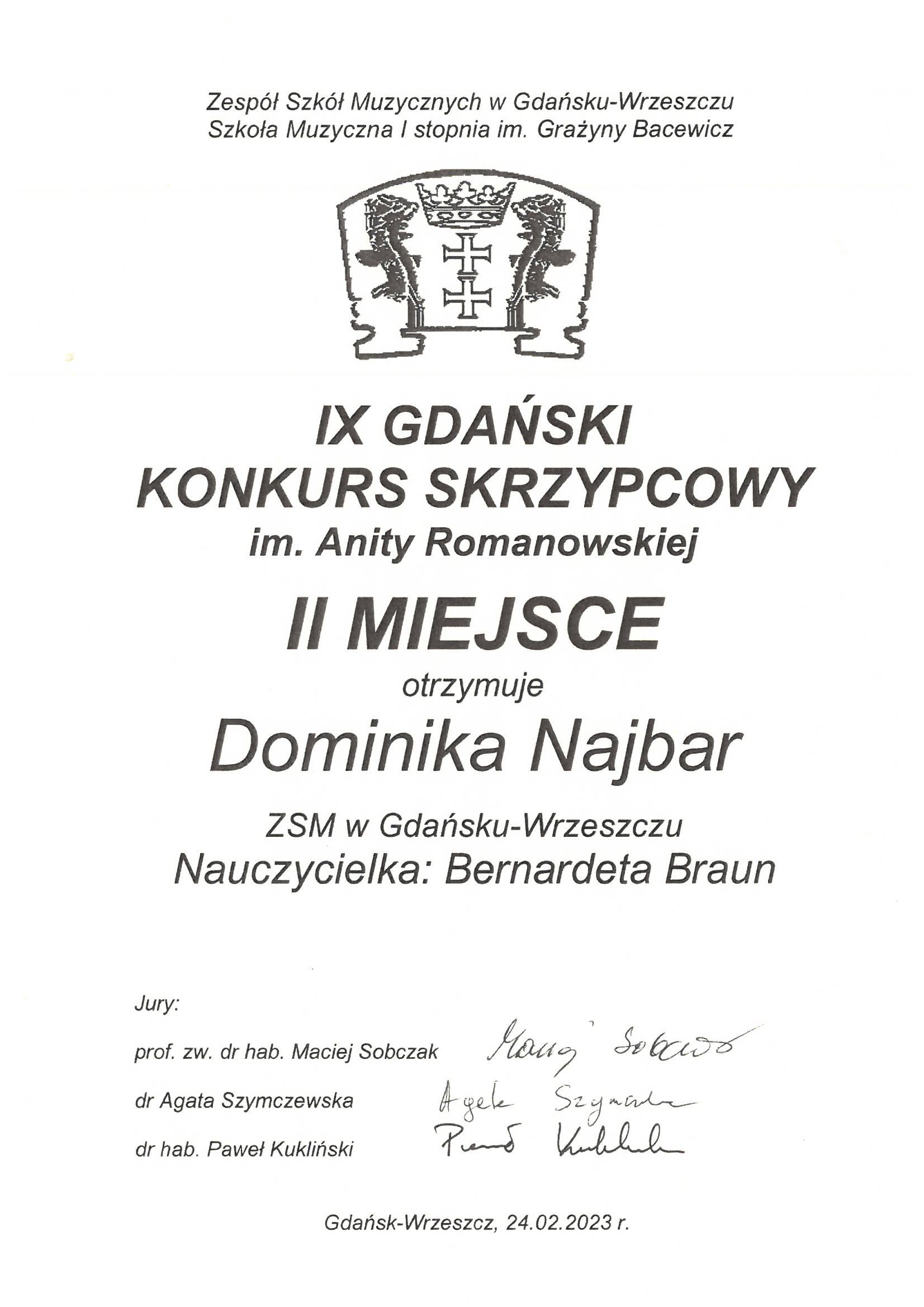 SUKCESY UCZNIÓW: IX GDAŃSKI KONKURS SKRZYPCOWY im. Anity Romanowskiej