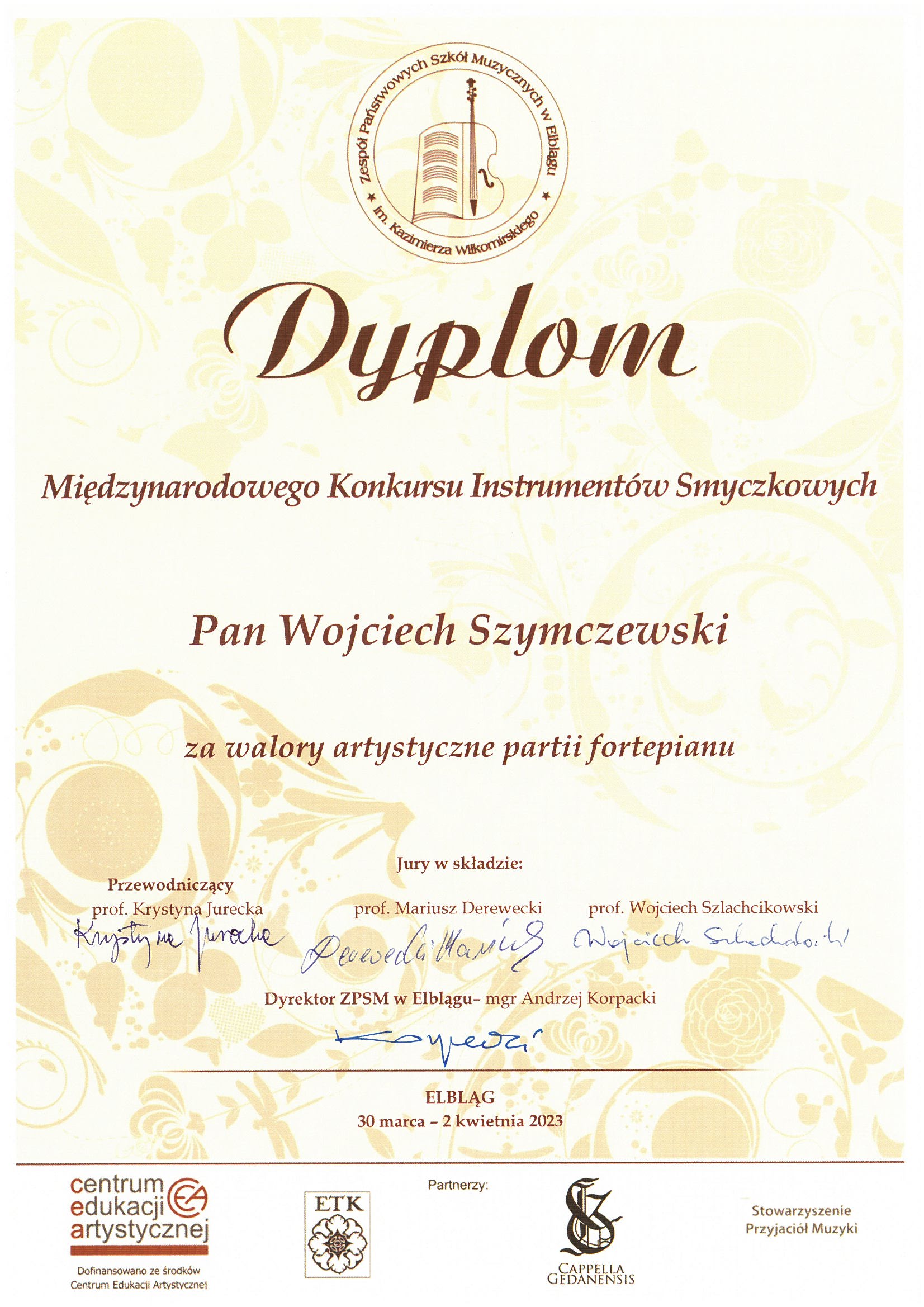 Wojciech Szymczewski - Dyplom za walory artystyczne partii fortepianu