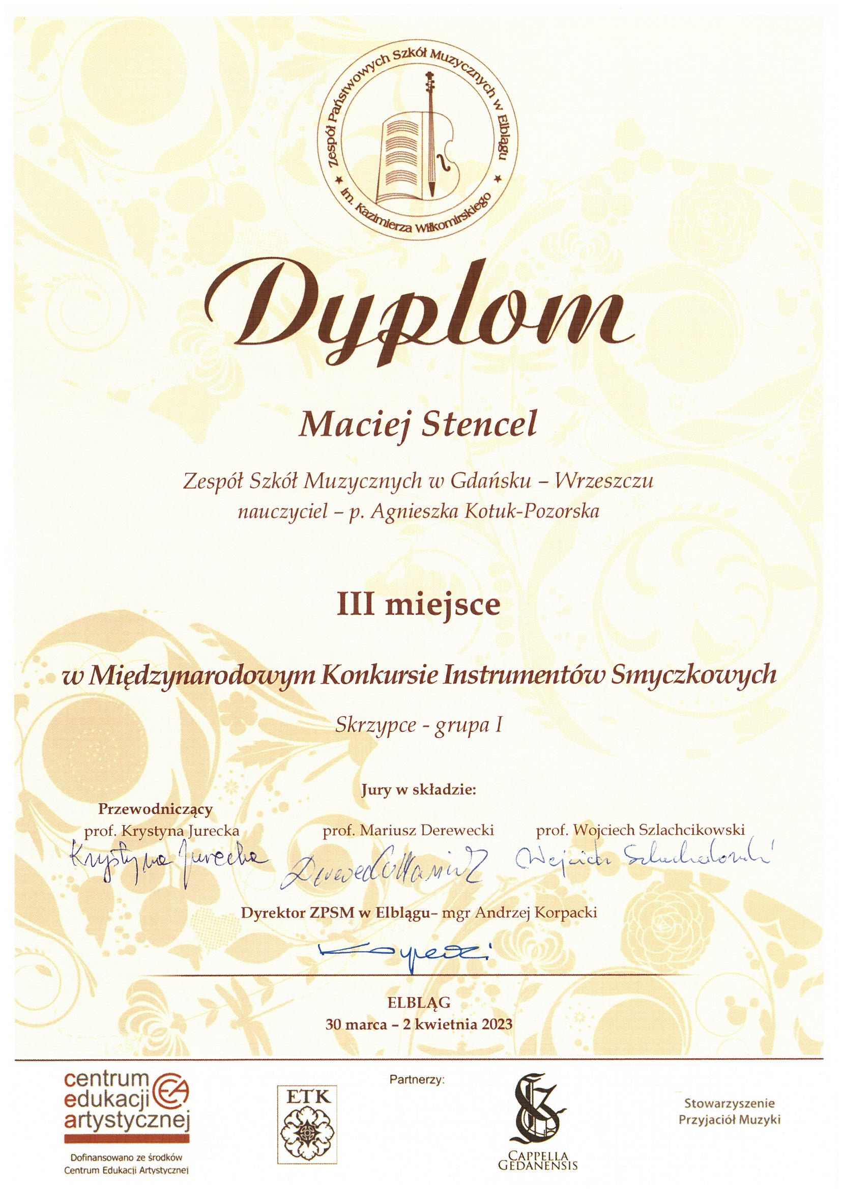 SUKCESY UCZNIÓW: Międzynarodowy Konkurs Instrumentów Smyczkowych, Elbląg