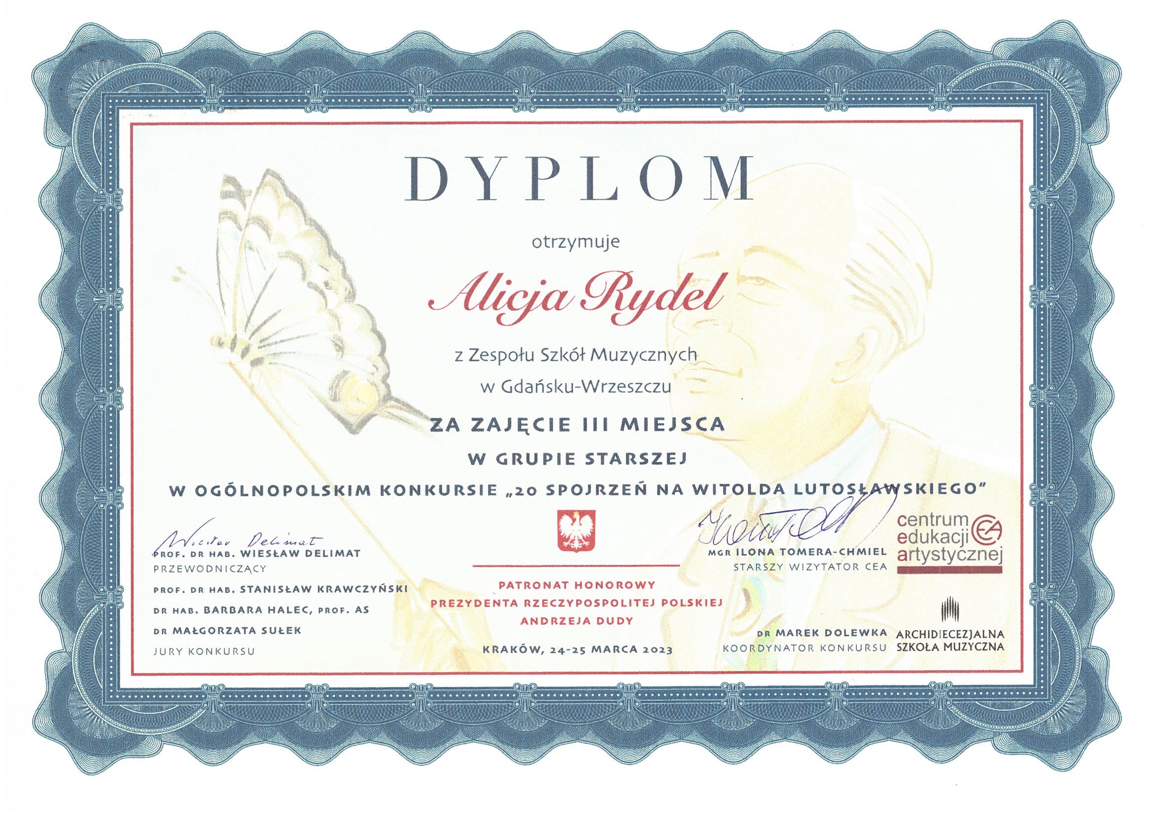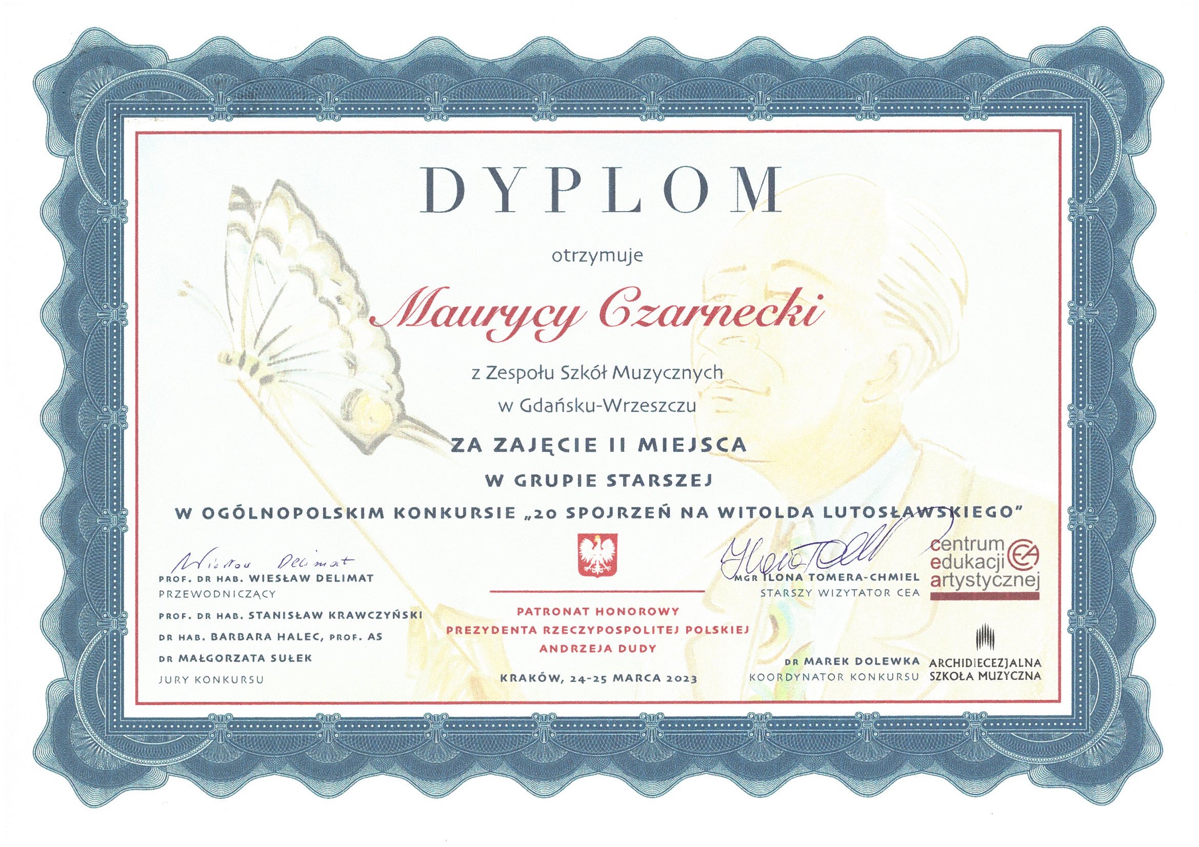 SUKCESY UCZNIÓW: Ogólnopolski Konkurs "20 spojrzeń na Witolda Lutosławskiego"