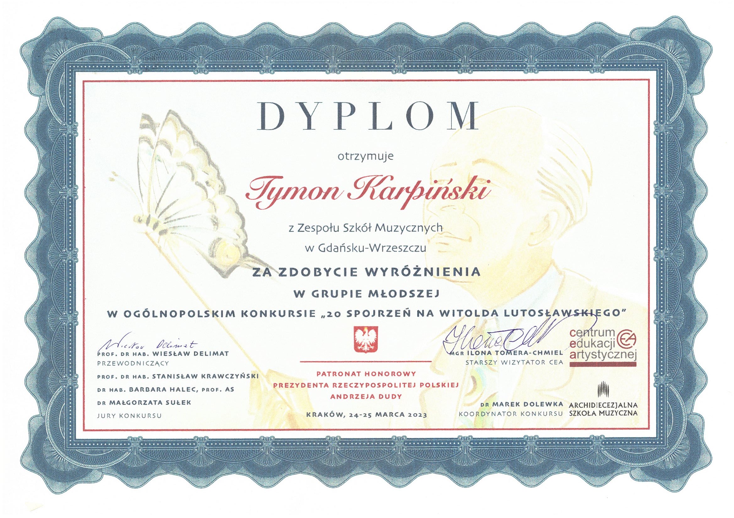 Tymon Karpiński - wyróżnienie w grupie młodszej
