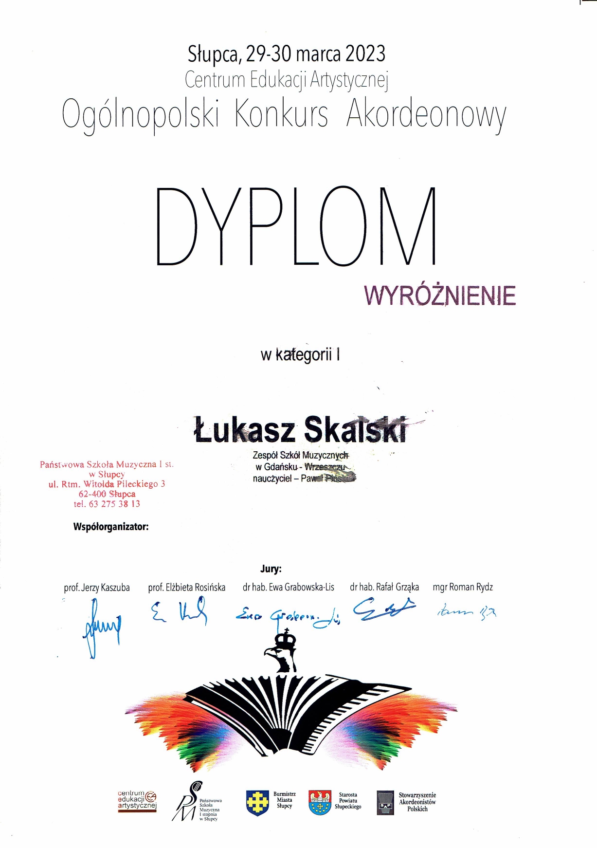 Wyróżnienie - Łukasz Skalski , uczeń Pawła Pińskiego