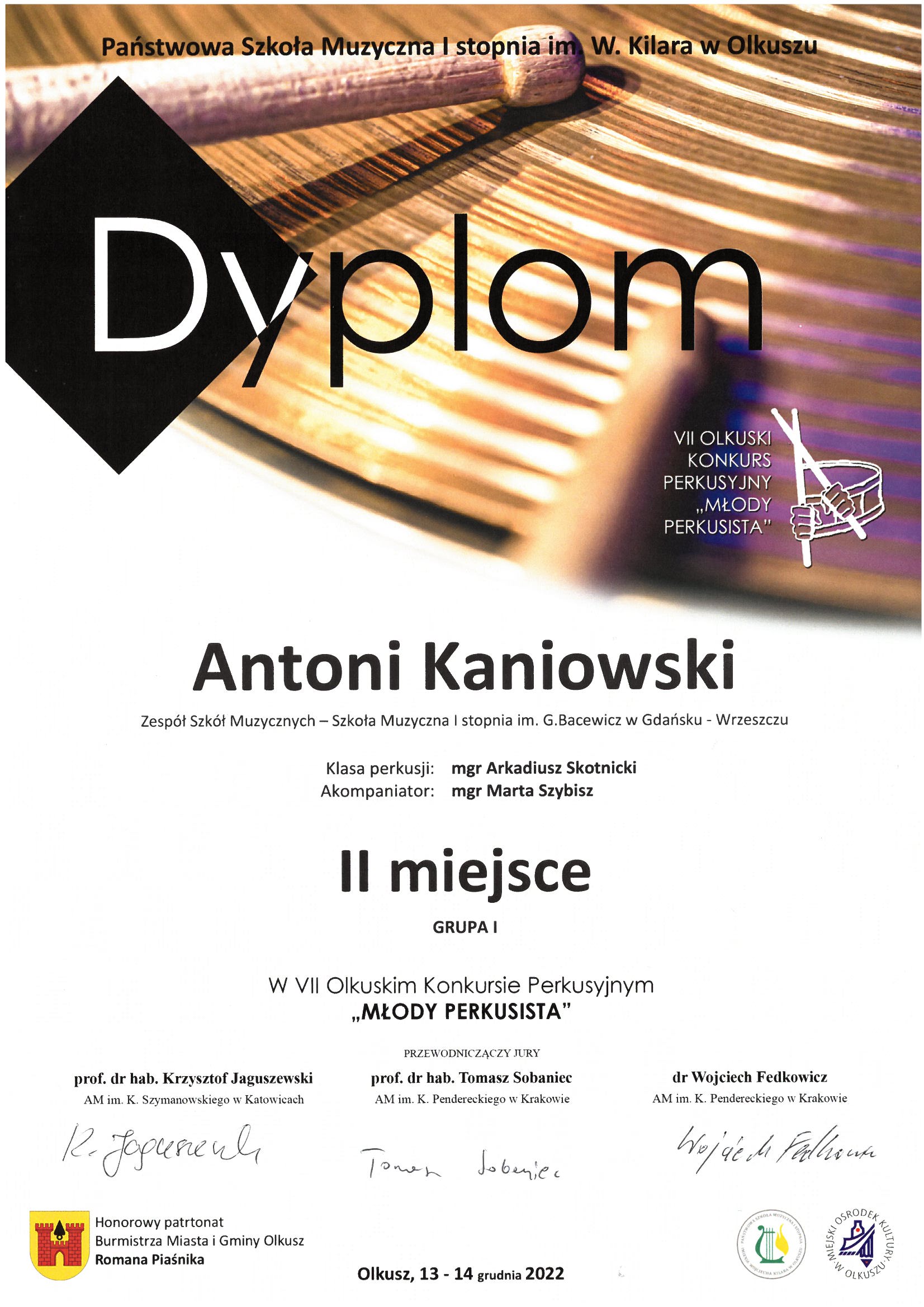 SUKCESY UCZNIÓW: VII Olkuski Konkurs Perkusyjny „ Młody Perkusista "