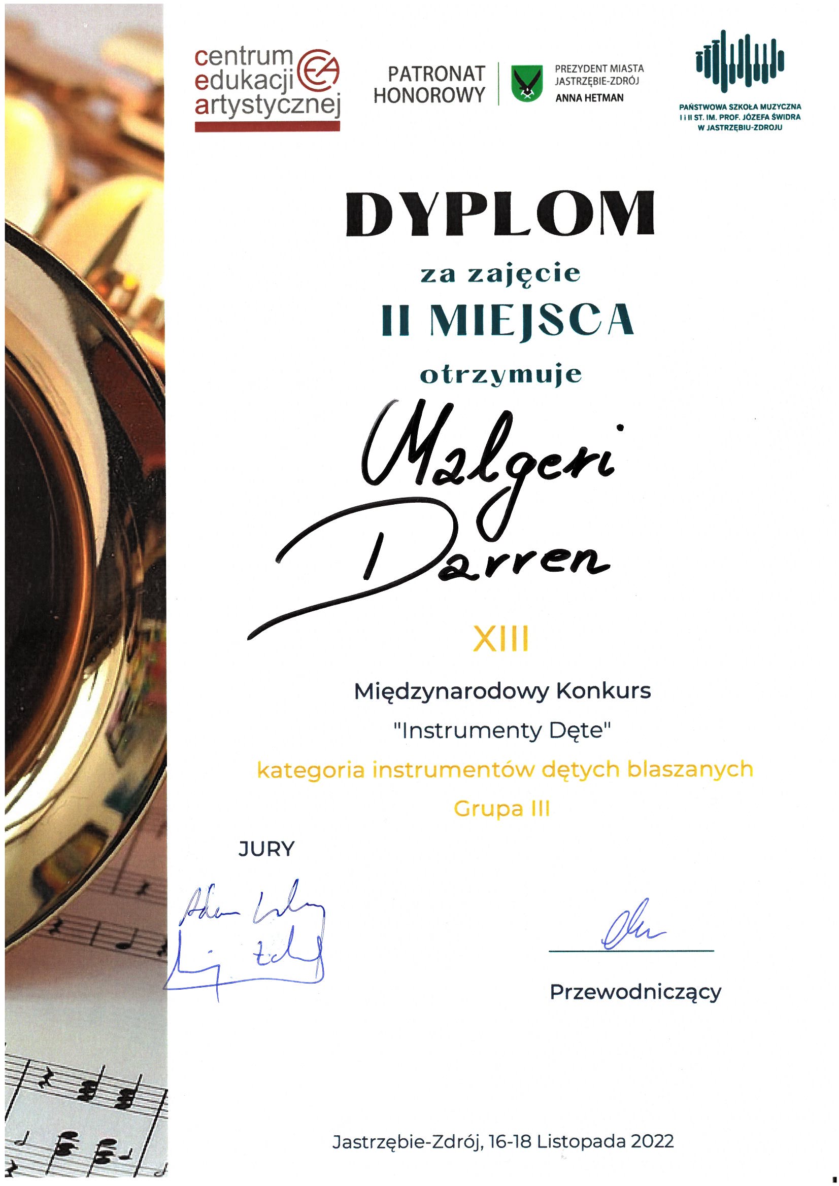 SUKCESY UCZNIÓW: XIII Międzynarodowy Konkurs „Instrumenty dęte” w Jastrzębiu-Zdroju