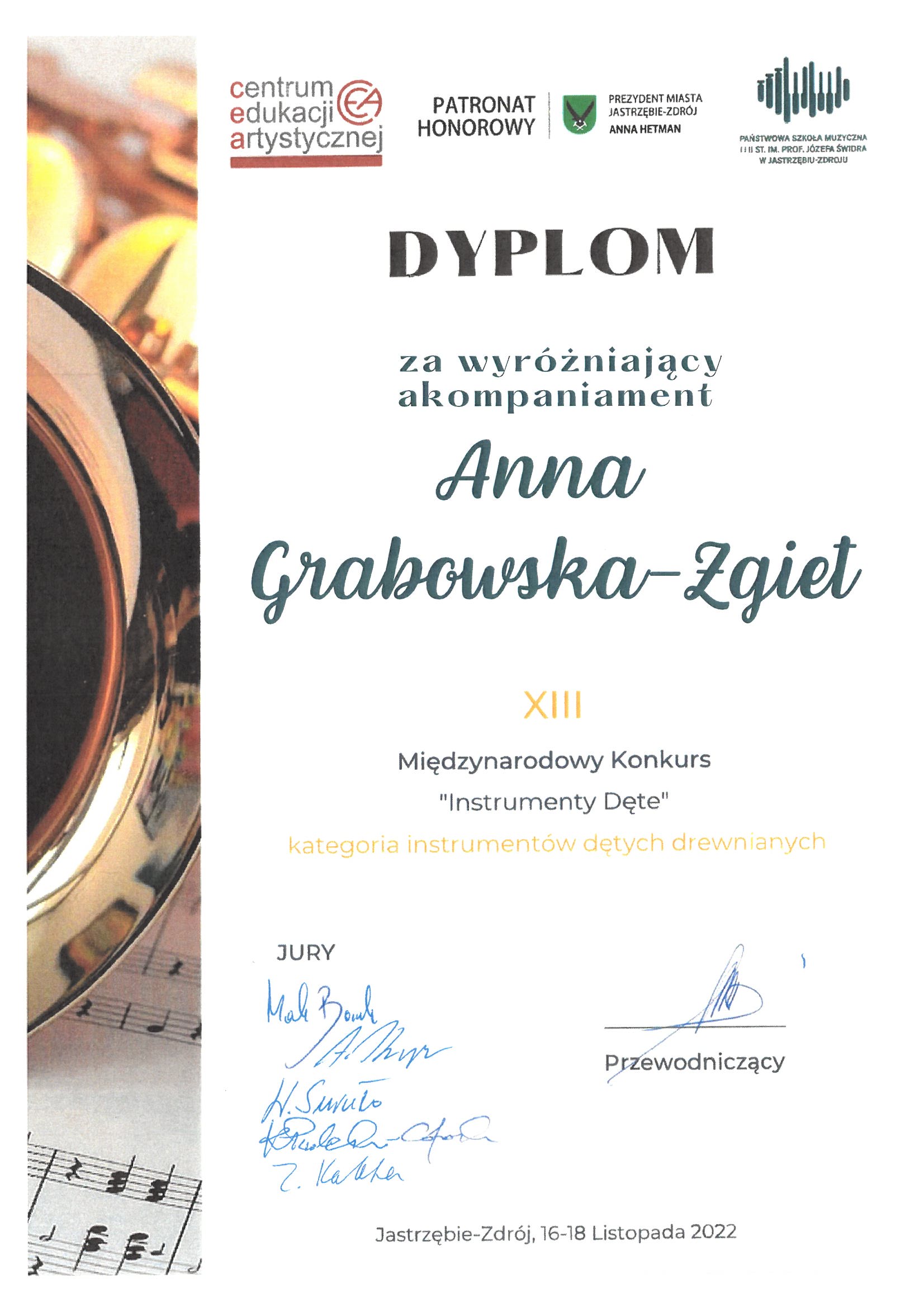 Anna Grabowska –Zgiet - dyplom za wyróżniający akompaniament