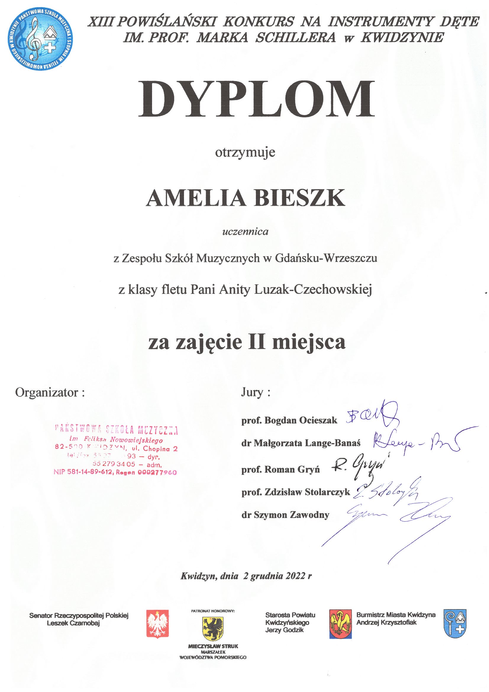 SUKCESY UCZNIÓW: XIII Powiślański Konkurs na Instrumenty Dęte im. prof. Marka Schillera w Kwidzynie