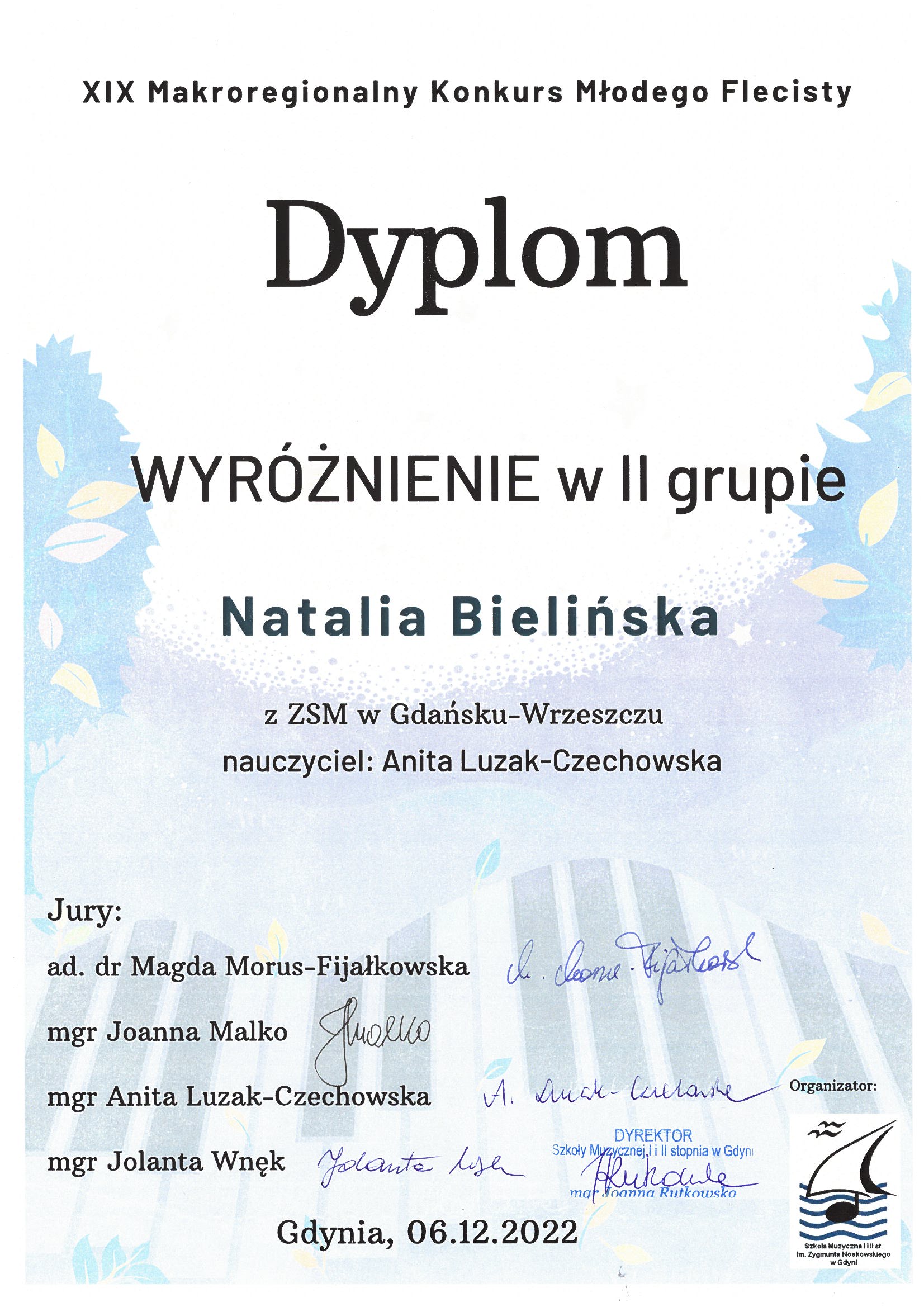SUKCESY UCZNIÓW: XIX Makroregionalny Konkurs Młodego Flecisty