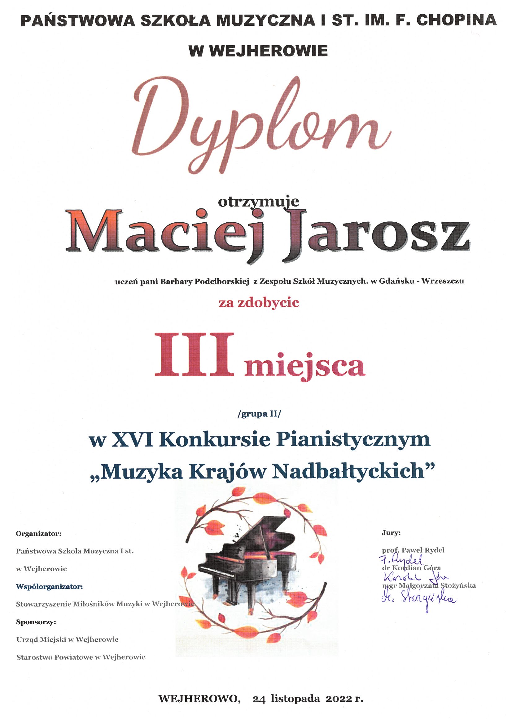 SUKCESY UCZNIÓW: XVI Konkurs Pianistyczny „ Muzyka Krajów Nadbałtyckich "