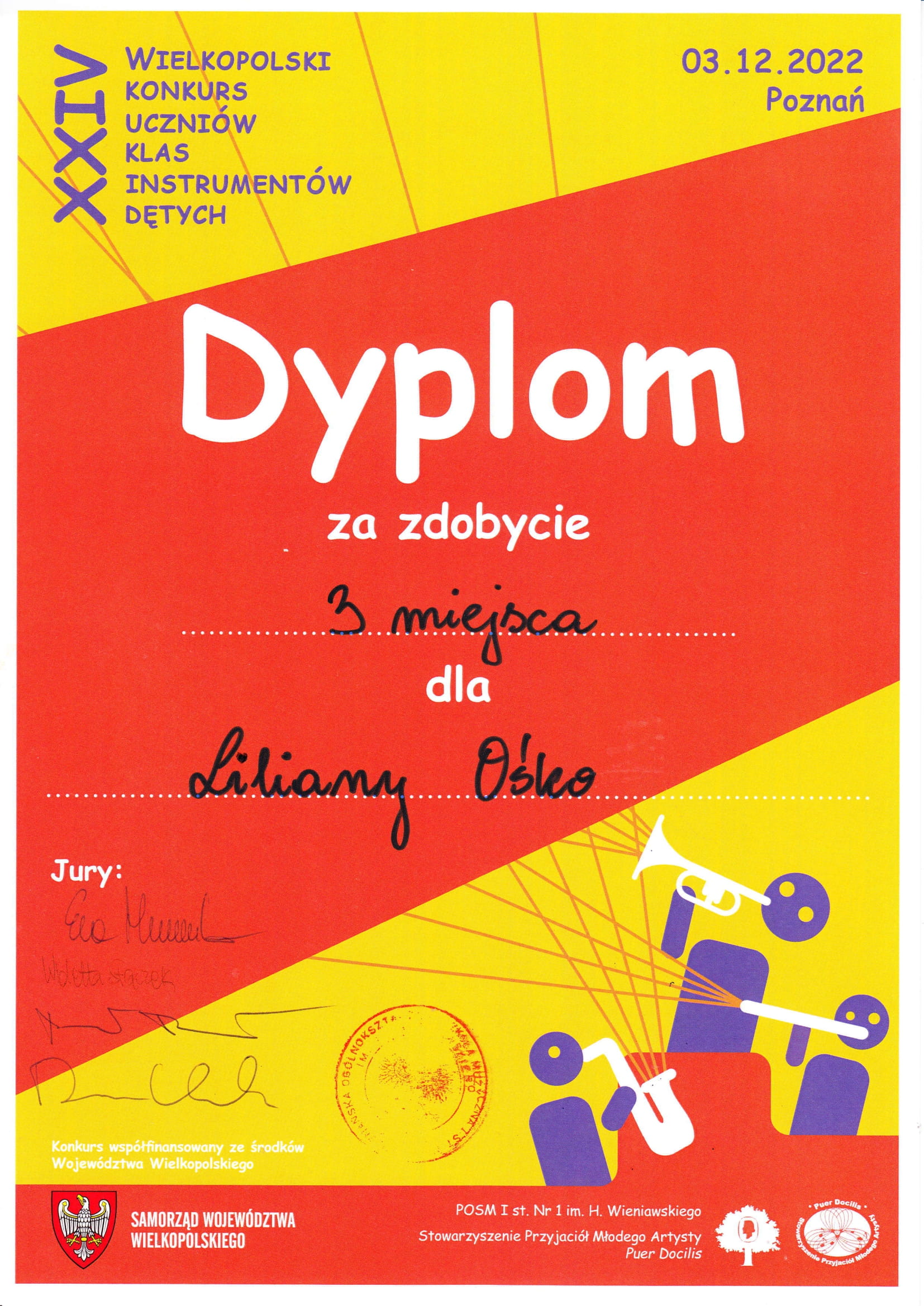 SUKCESY UCZNIÓW: XXIV Wielkopolski Konkurs Uczniów Klas Instrumentów Dętych