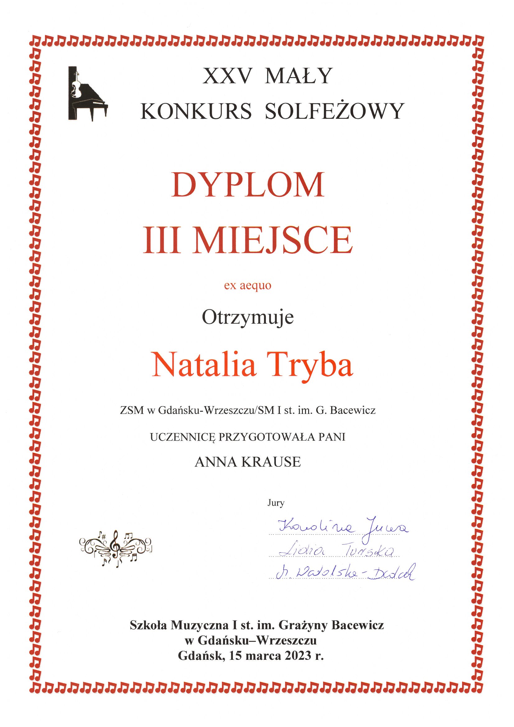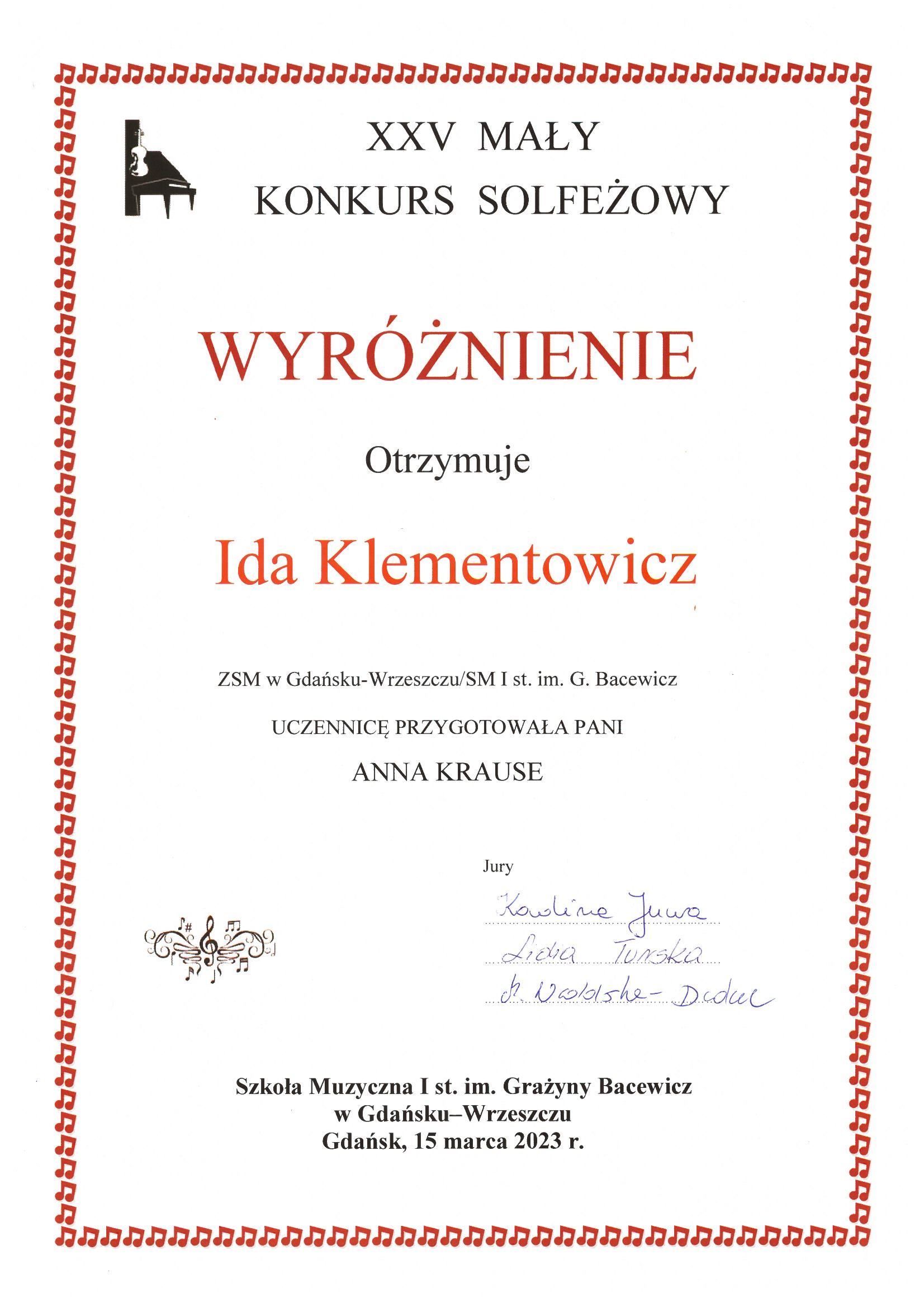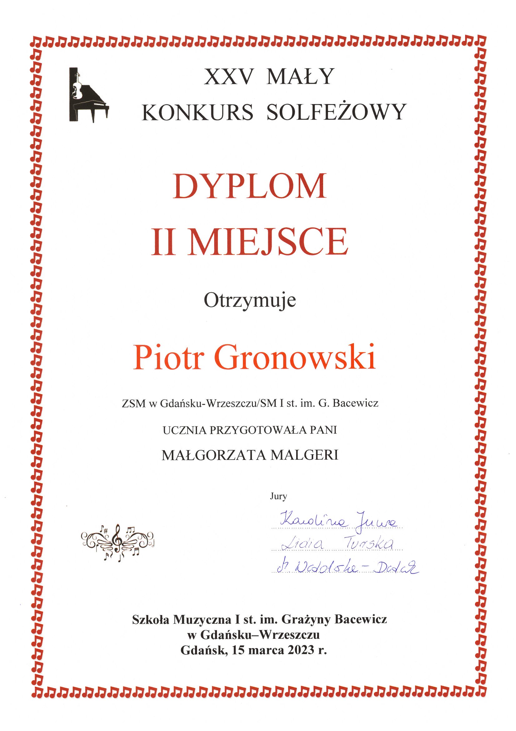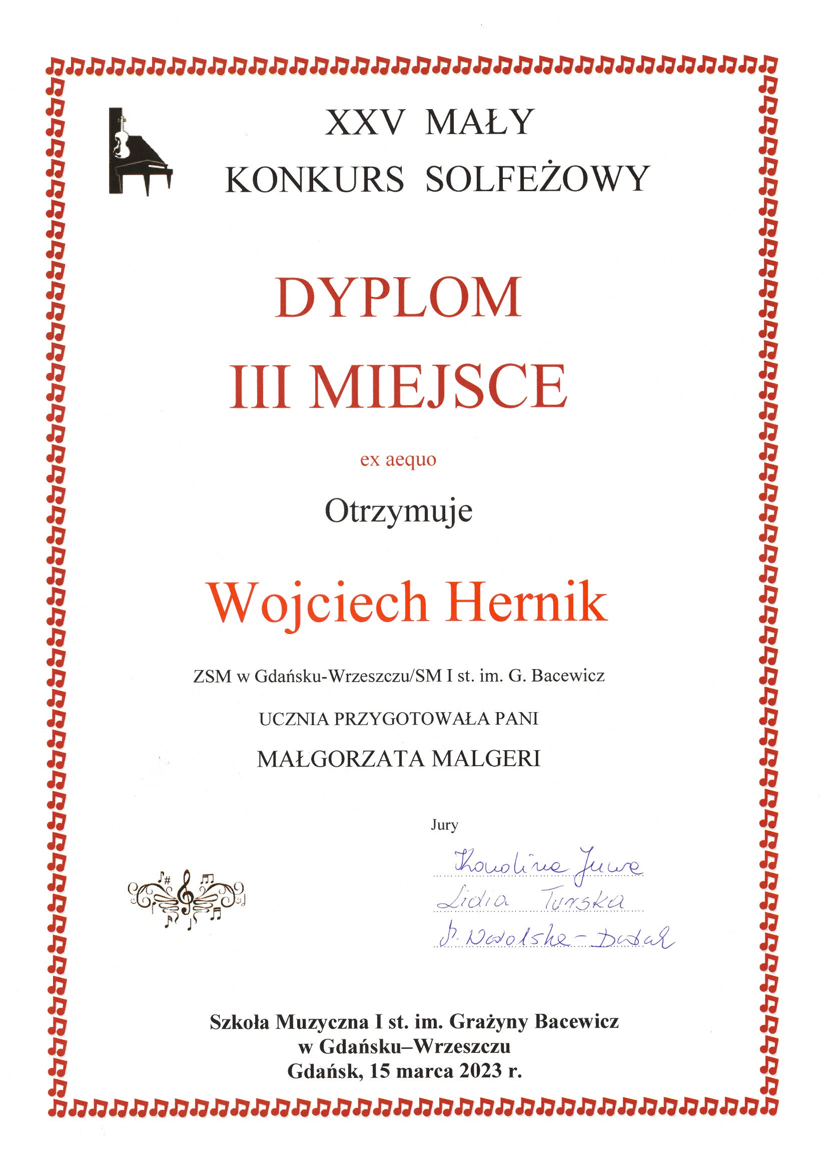 SUKCESY UCZNIÓW: XXV Mały Konkurs Solfeżowy