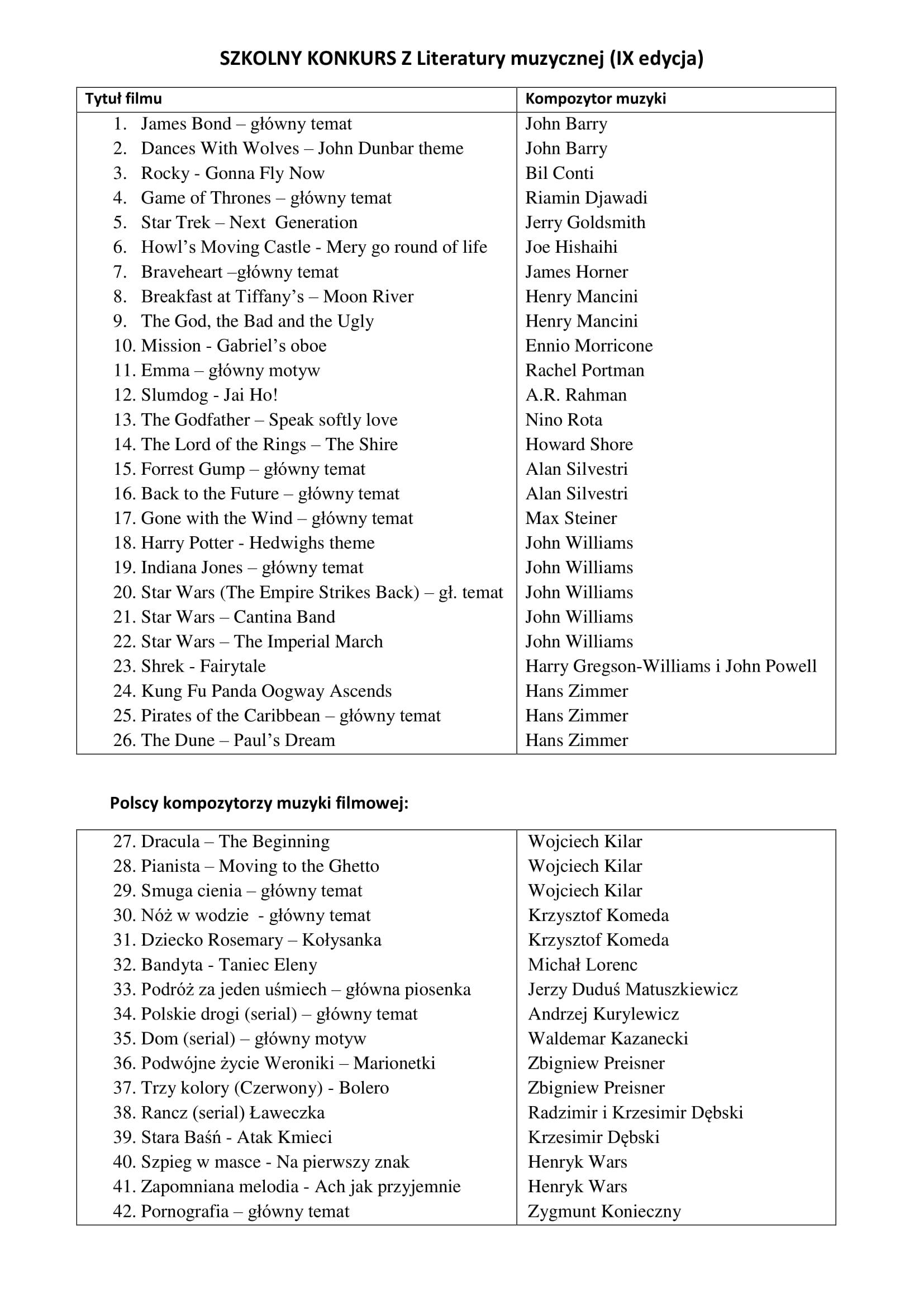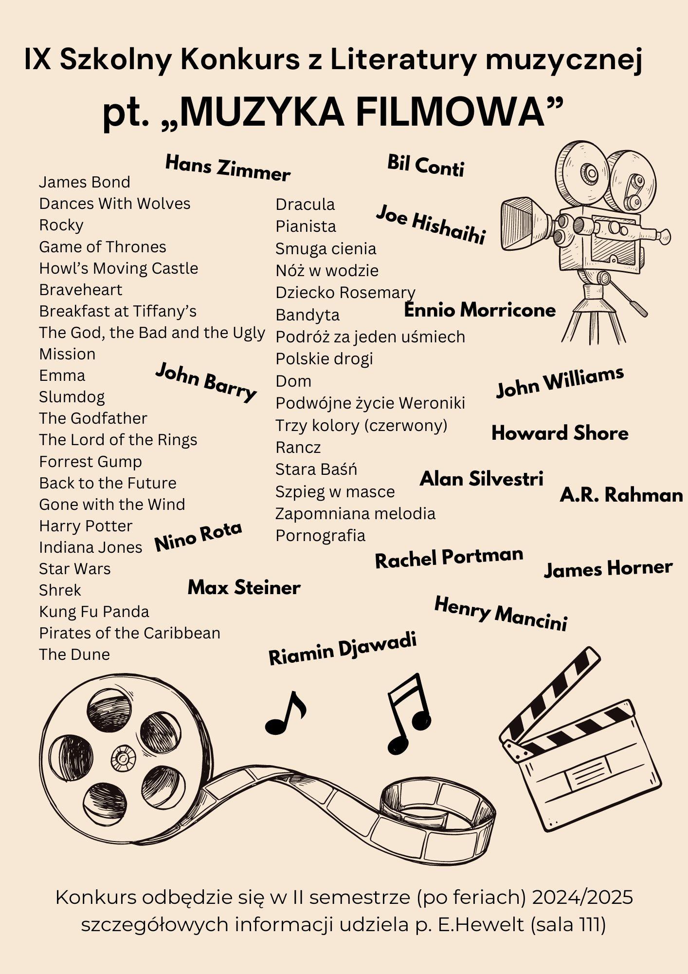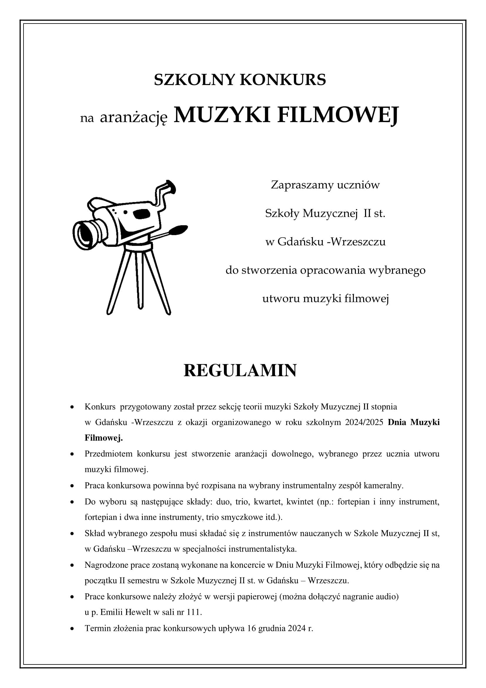 Sekcja teorii muzyki Szkoły Muzycznej II st. zaprasza uczniów do udziału w szkolnych konkursach, które w tym roku będą związane z muzyką filmową.
