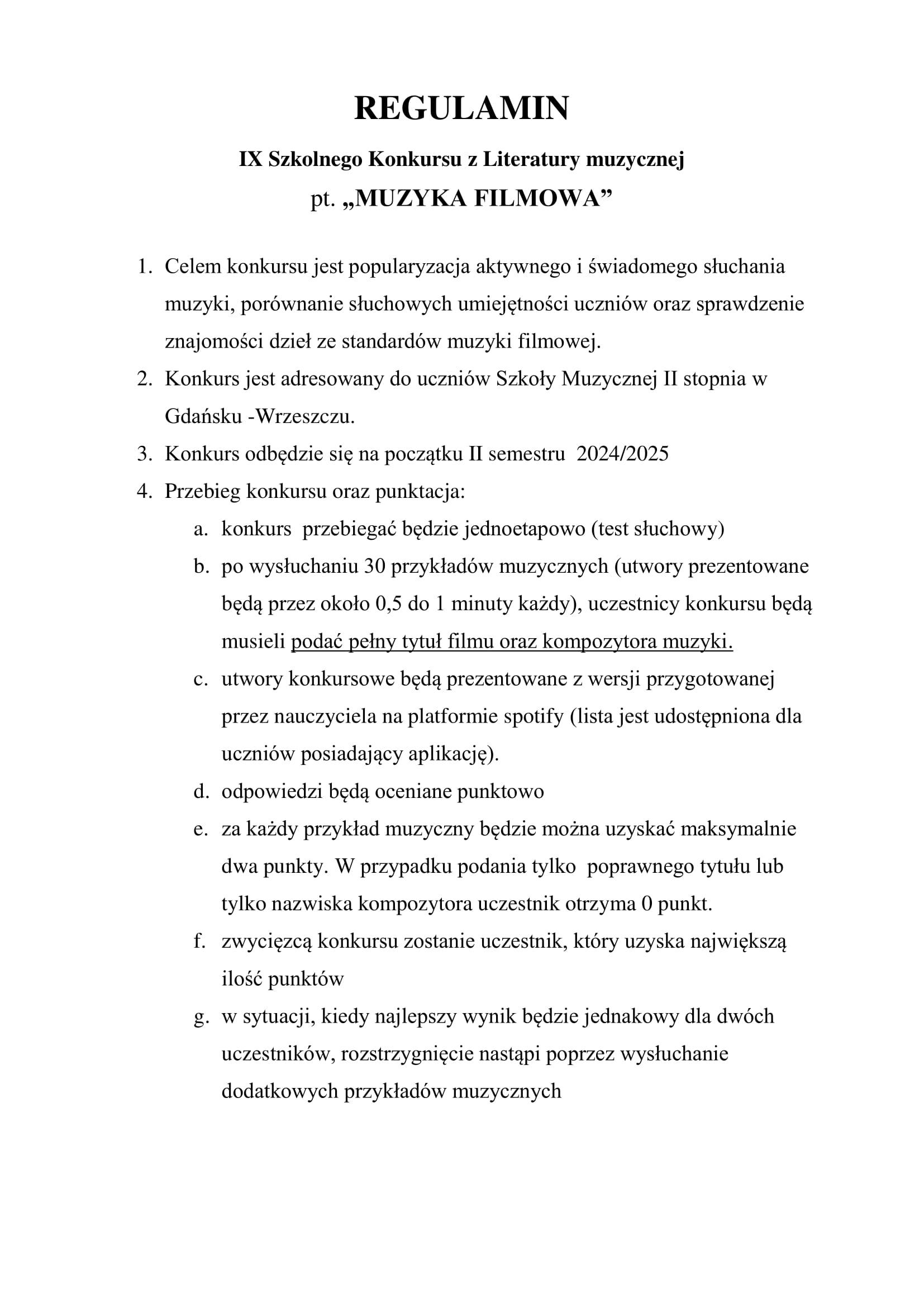 Pierwszy konkurs jest konkursem wiedzy z literatury muzycznej, drugi na aranżację dowolnego utworu muzyki filmowej.