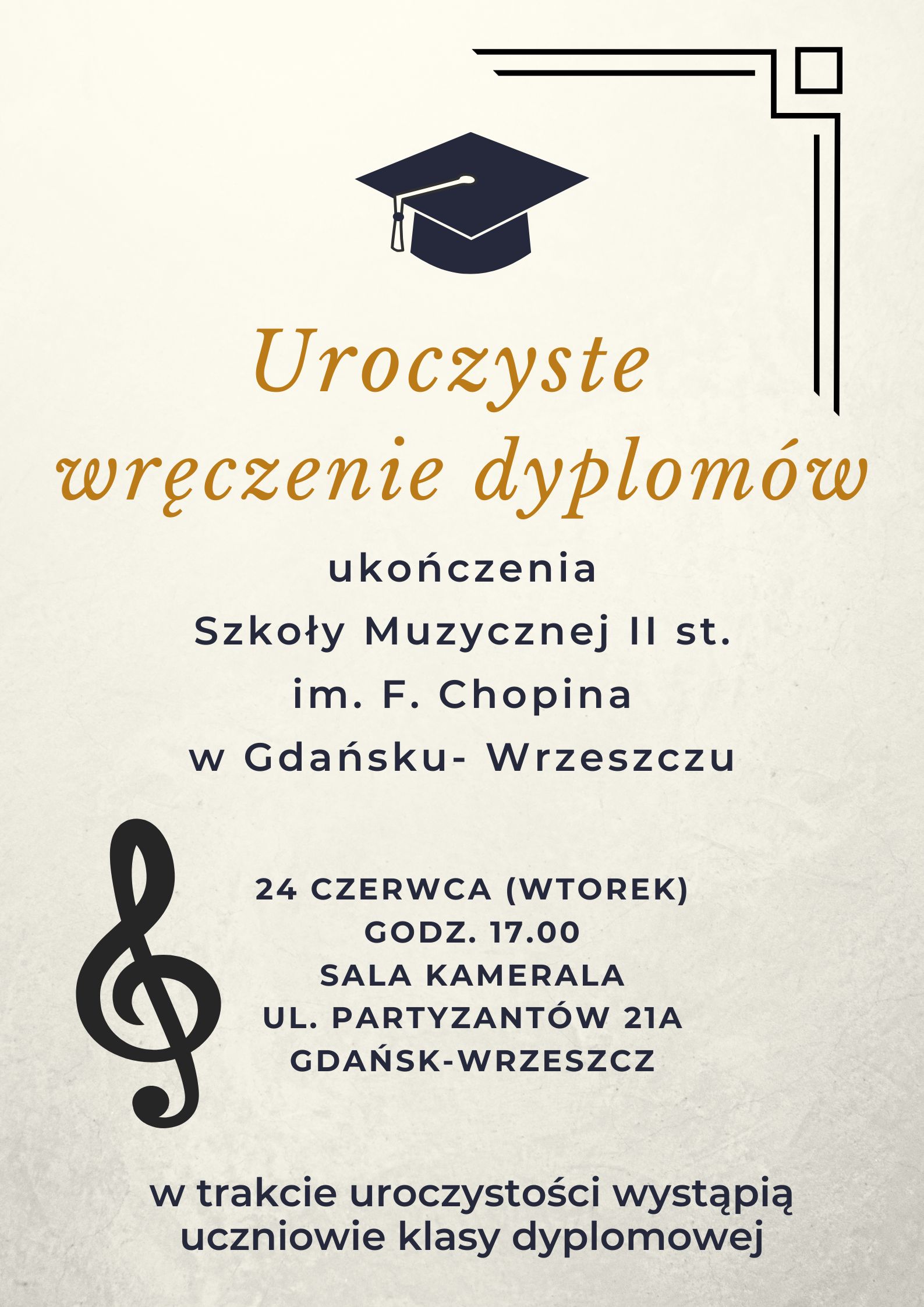 Serdecznie zapraszamy na uroczystość wręczenia dyplomów uczniom szkoły muzycznej II st.