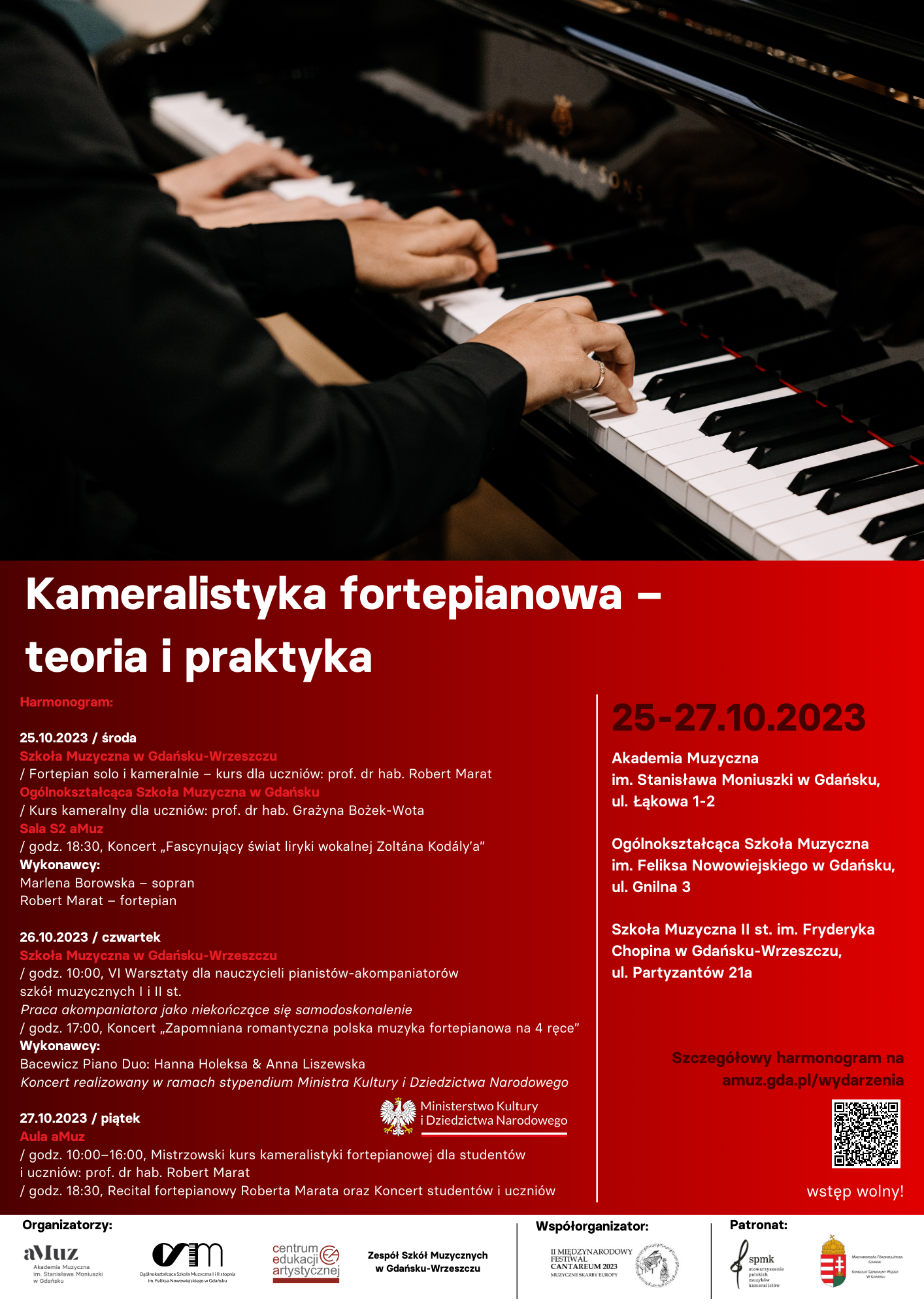 organizatorzy: Centrum Edukacji Artystycznej, Zespół Szkół Muzycznych w Gdańsku-Wrzeszczu, Międzywydziałowa Katedra Akompaniamentu AM w Gdańsku