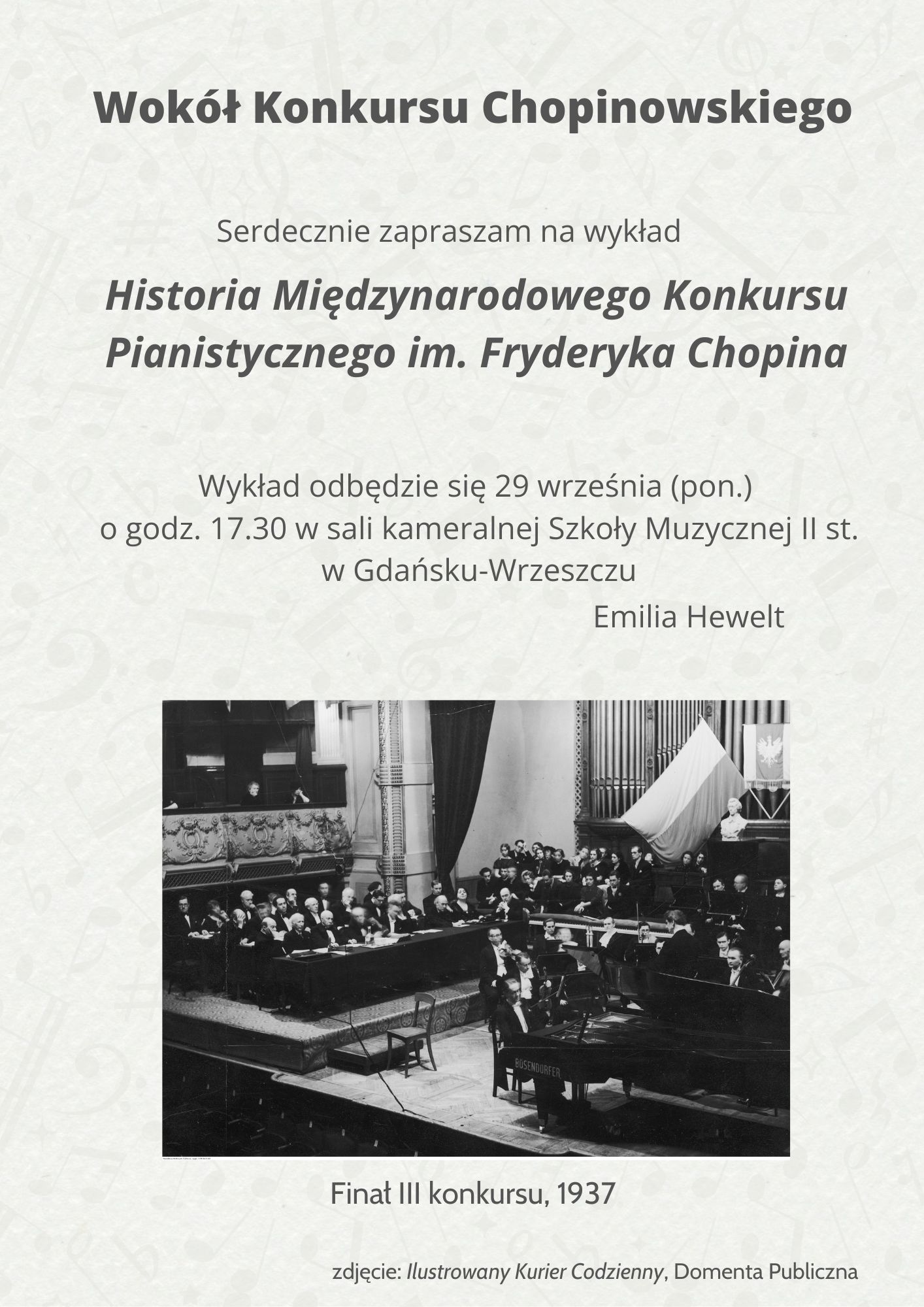 Zapraszamy na wykład o historii Międzynarodowego Konkursu Pianistycznego im. F. Chopina.