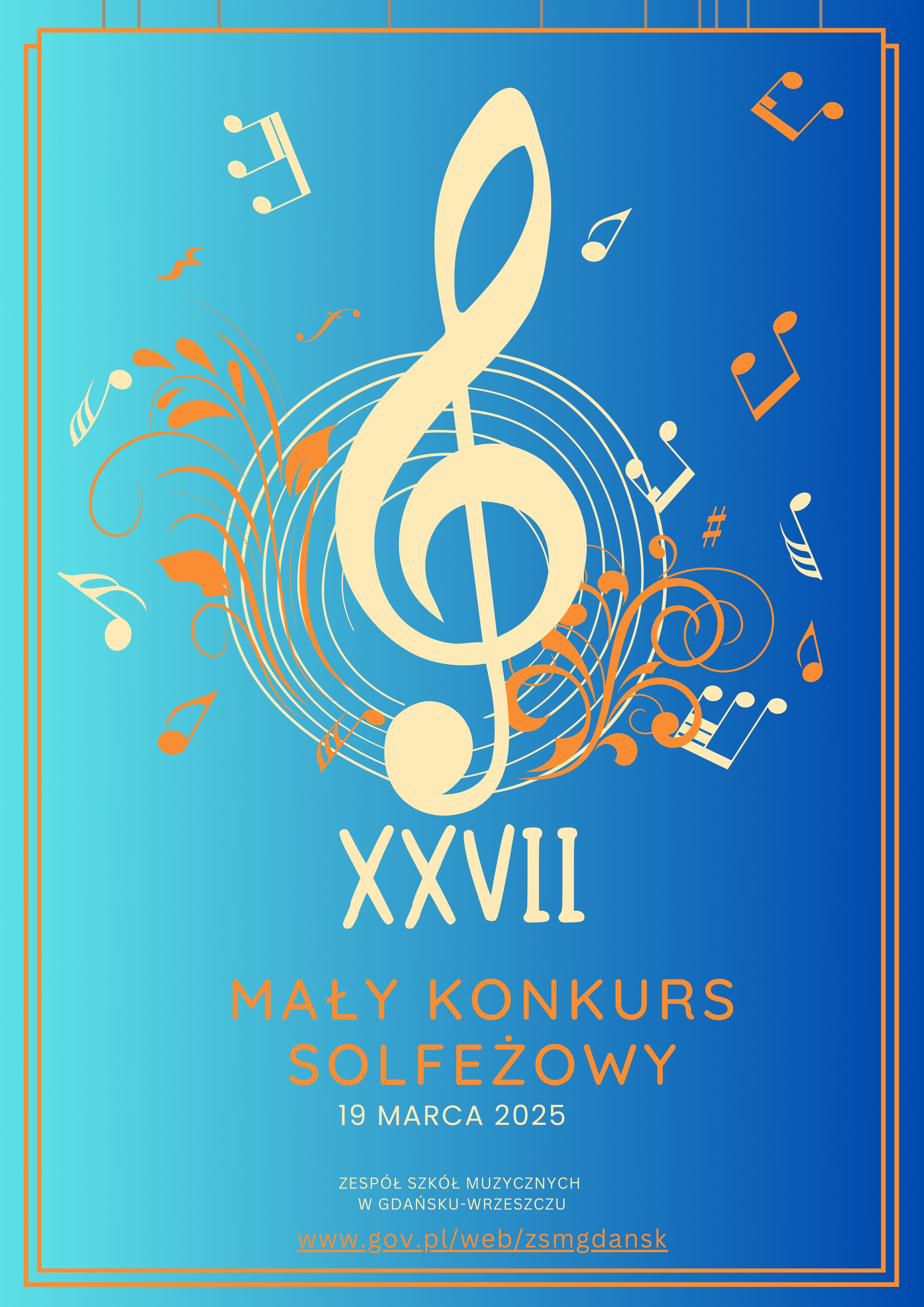 Zespół Szkół Muzycznych w Gdańsku – Wrzeszczu zaprasza uczniów klas 3 cyklu sześcioletniego do wzięcia udziału w XXVII Małym Konkursie Solfeżowym SM I stopnia , który odbędzie się w dniu 19 marca 2025 roku o godzinie 11:00 .
